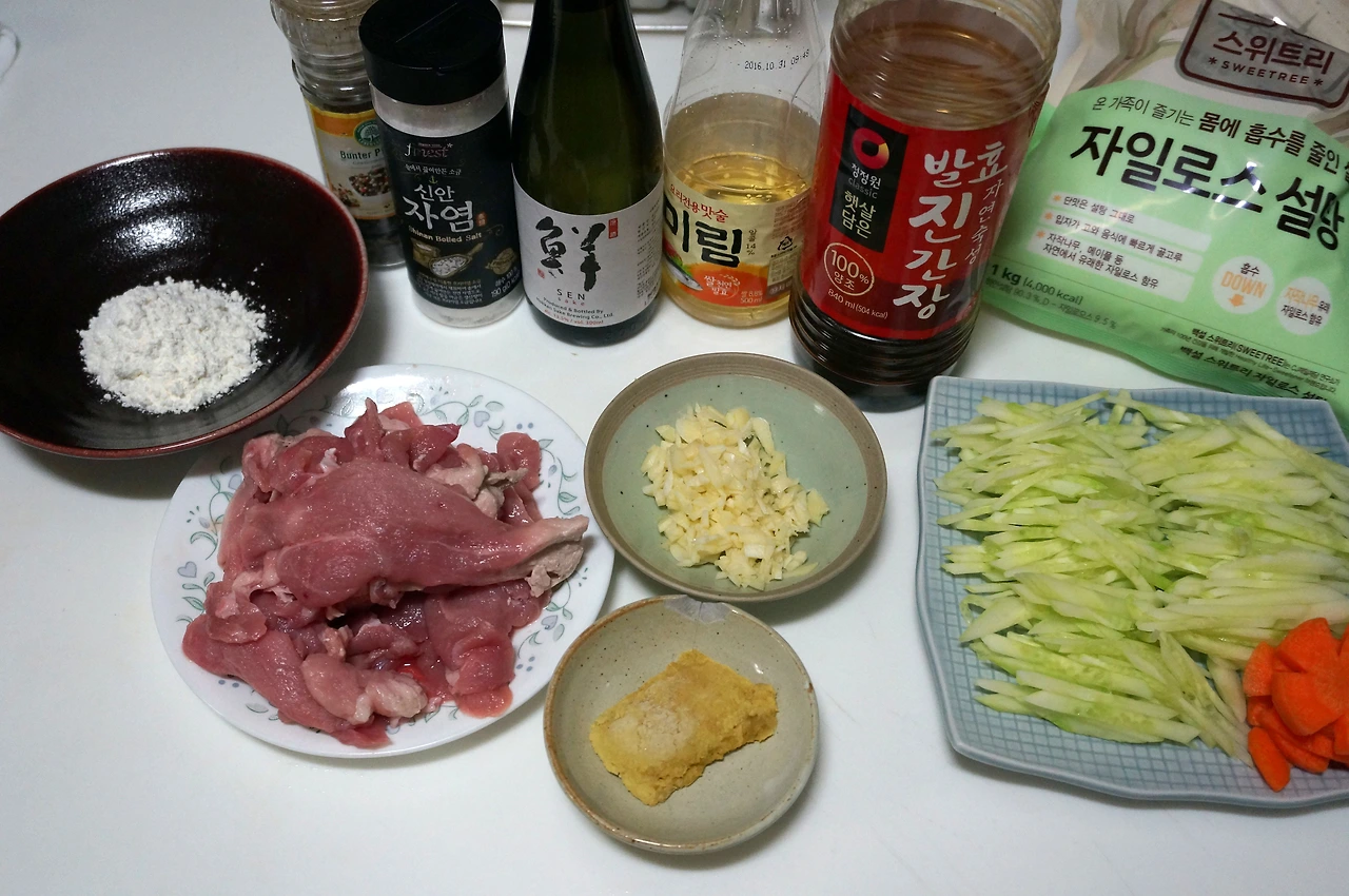 돼지고기에 뿌린 밀가루는 고기를 감싸면서 육즙이 빠지는 것을 막고 소스가 고기에 스며드는 것을 돕는다고 한다.