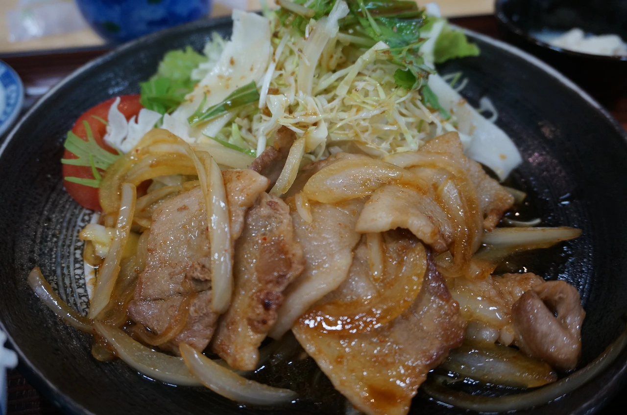 잠시 후 나온 쇼가야키는 나의 반가움과 기대에 보답을 하는 맛이었다. 지방과 살코기가 적당히 섞인 찰기 있는 돼지고기는 간장과 생강으로 맛을 낸 소스에 어우러져 고소하고 부드러웠다.