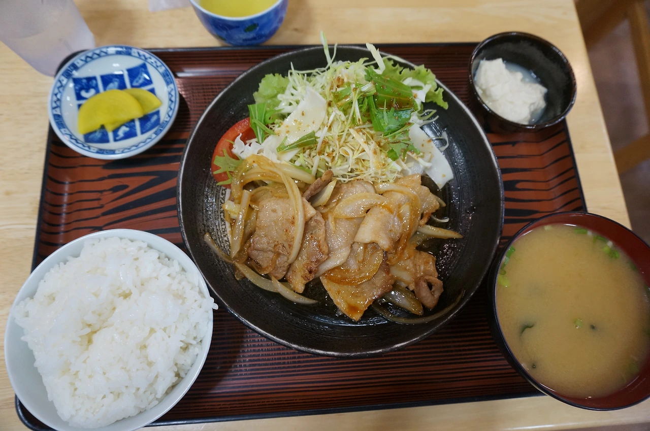도와주러 온 점원은 영어나 한국어를 전혀 알아듣지 못하는 상황. 일본인 특유의 미안함이 가득하지만 친절한 눈빛을 하고 두 손 모아 내 곁을 지키고 선 점원 덕에 시간을 끌던 나는 큰 부담감을 느꼈다. 기다리는 그에게 미안한 마음에 눈을 질끈 감고 돈가스를 주문하려는 찰나, 한자 까막눈인 내 눈에 '豚の生姜焼き'라는 메뉴가 눈에 띄었다. '豚'이면 '돼지 돈(豚)자'렸다... 오키나와의 돼지고기가 유명하니 돼지고기 요리를 시켜서 손해 볼 것은 없다 싶었다. 용기를 내어 종업원에게 메뉴판의 '豚の生姜焼き'를 손가락으로 가리키며 "난노 료리데스까(무슨 요리입니까)?"를 물었다. 종업원은 친절하게 "아, 쇼가야키데스"라고 대답하였다. '쇼가야키'라! 쇼가야키라면 어디선가 들어본 적이 있는 요리였다. 어느 요리 블로그였는데... 반가움에 흥분하여 종업원이 깜짝 놀랄 정도로 기쁜 목소리로 주문을 했다. "쇼가야키! 쇼가야키와 시테 이마스! 쇼가야키 구다사이!(쇼가야키는 알고 있습니다! 쇼가야키 주세요!)"