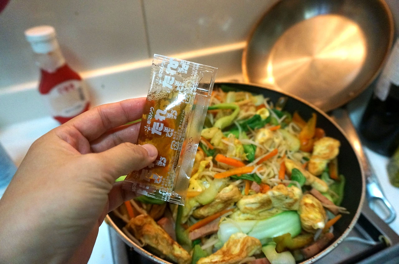 나는 다시다 가루와 간장 대신 돈키호테에서 구입한 참프루 소스를 사용해보기로 했다. 맛을 보니 기대한 바와 마찬가지로 다시다, 간장, 소금의 맛이 났다.