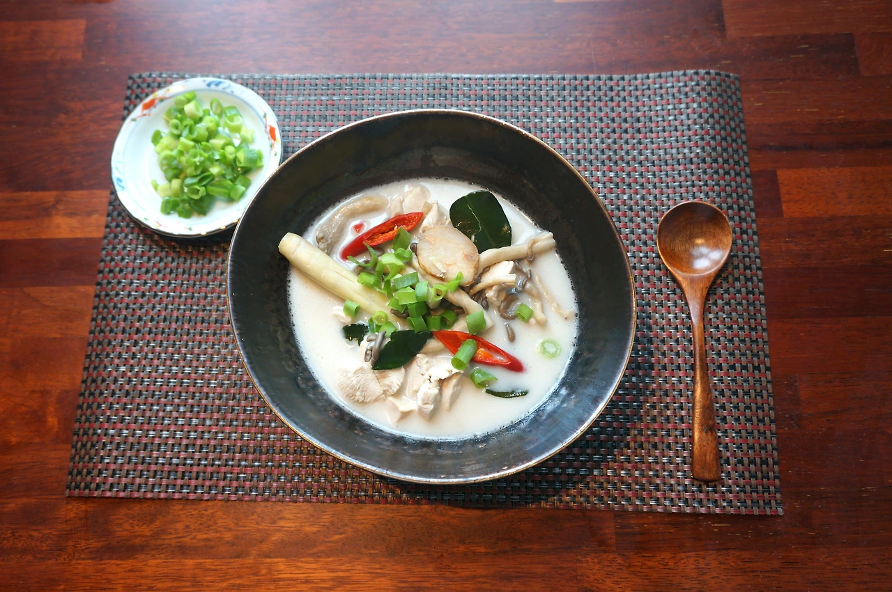 그다음으로, 태국 요리의 대표적인 재료인 닭고기, 코코넛 밀크, 피시소스, 고추, 레몬그래스, 갈랑갈, 카피르 라임 잎이 모두 사용되는 요리라는 점을 고려했다. 이 모든 재료가 한 데 모여 어떻게 조화를 이루어내는가, 그것을 이해하면 태국요리가 한층 가깝게 느껴질 것이다.