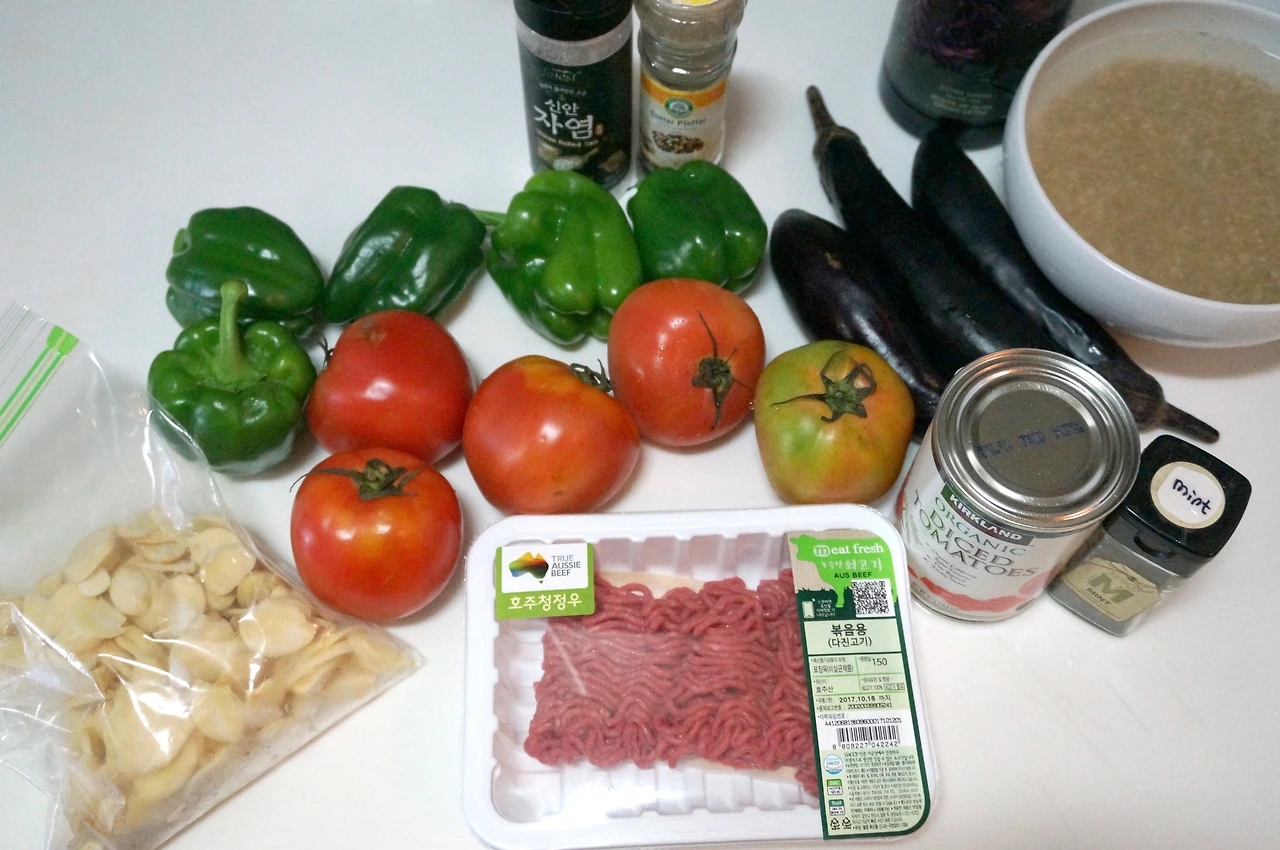 오늘 만들 요리는 피망과 토마토로 만든 돌마(biber dolma, domates dolma)이다. 레시피마다 재료가 조금씩 다르고 그 양도 자유자재인 것으로 미루어보아 평범한 가정요리임을 짐작할 수 있다.