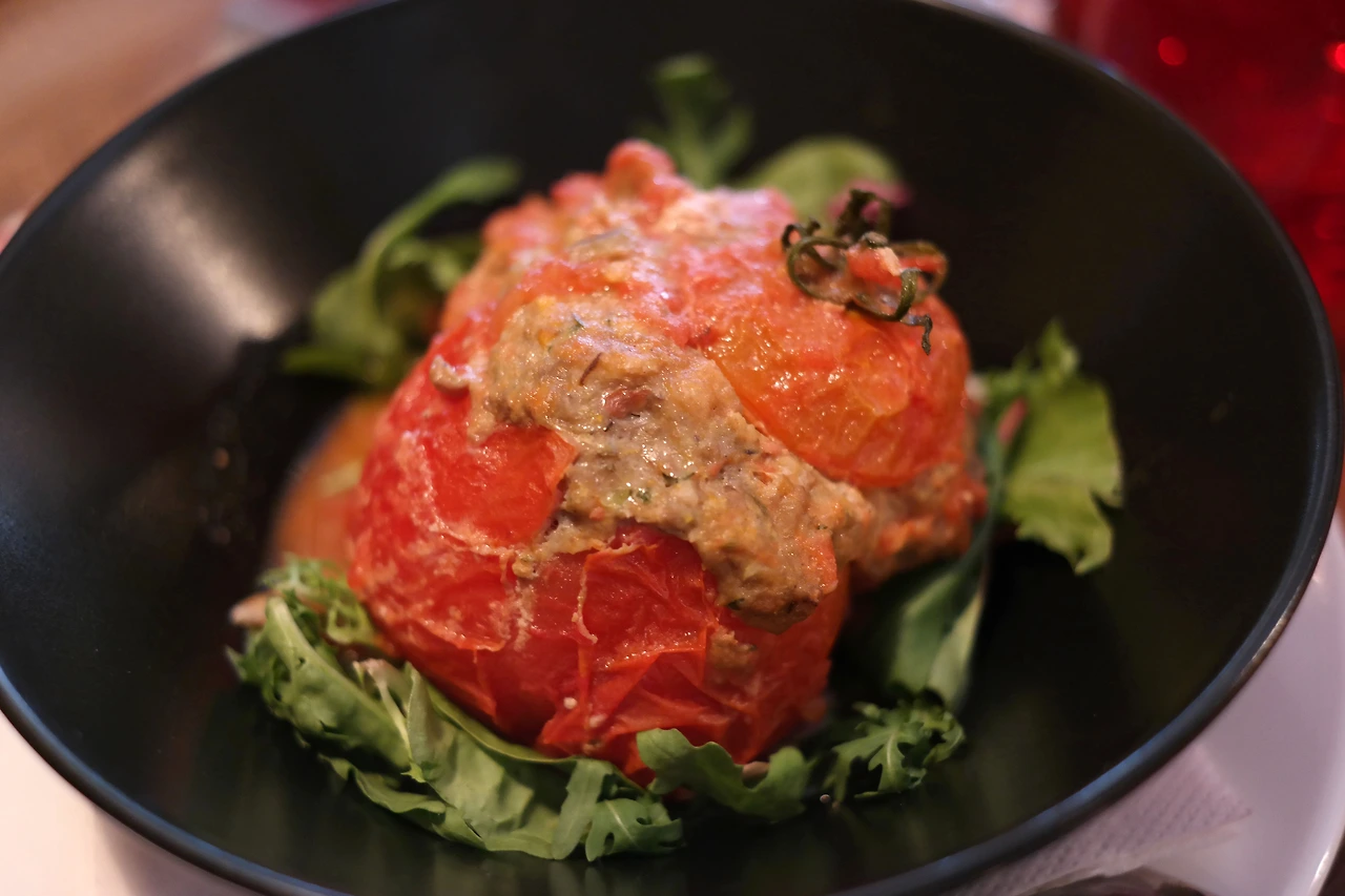 향신료가 많이 들어간 것이 아니기 때문에 그 맛이 삼삼하다. 그 때문에, 오븐에서 노릇하게 익은 토마토와 피망의 향을 더욱 섬세하게 느낄 수 있었다. 특히 피망의 은은한 매운맛이 매력적이다. 새콤한 토마토 국물은 감칠맛을 잡는 역할을 한다. 흐릿하게 남은 민트향이 전체적인 맛의 조화를 해치지 않고 얌전히 향의 한 갈래를 더한다.