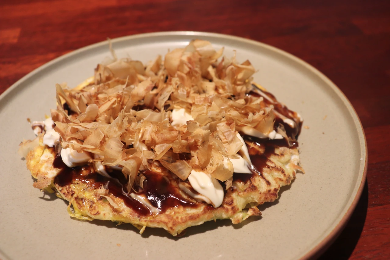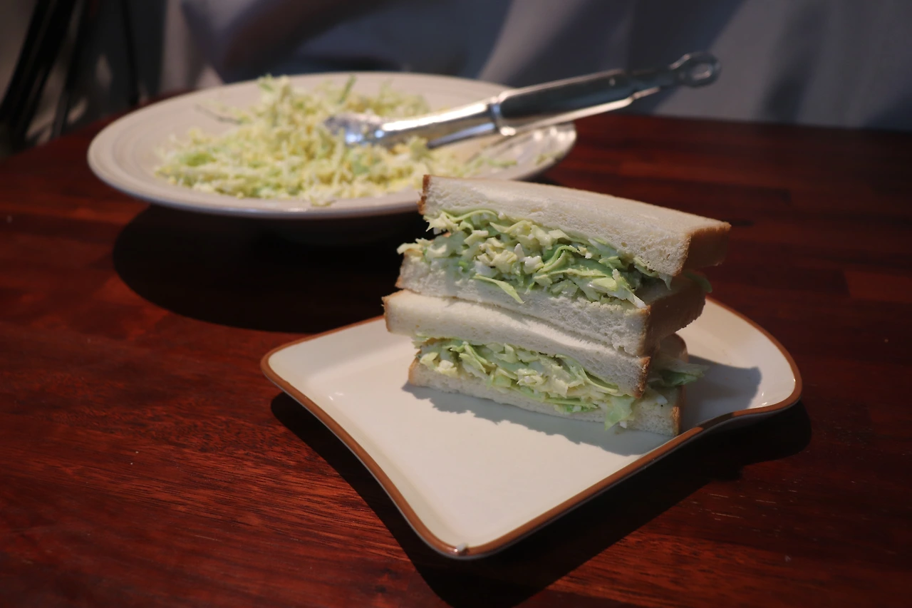 오코노미야키와 양배추샐러드 샌드위치. 어느 쪽이 더 맛있냐 묻는 것은 엄마와 딸 중 누가 더 사랑스럽냐고 묻는 것 만큼이나 쓸모가 없는 질문이다.
