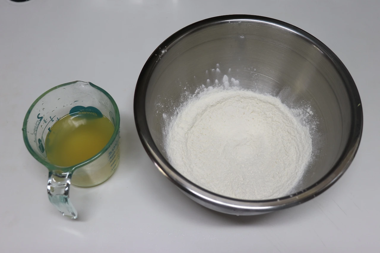 1. 밀가루와 베이킹파우더를 볼에 넣어 잘 섞는다.