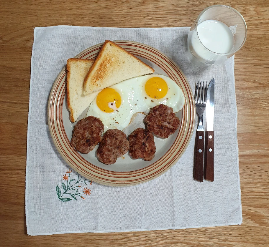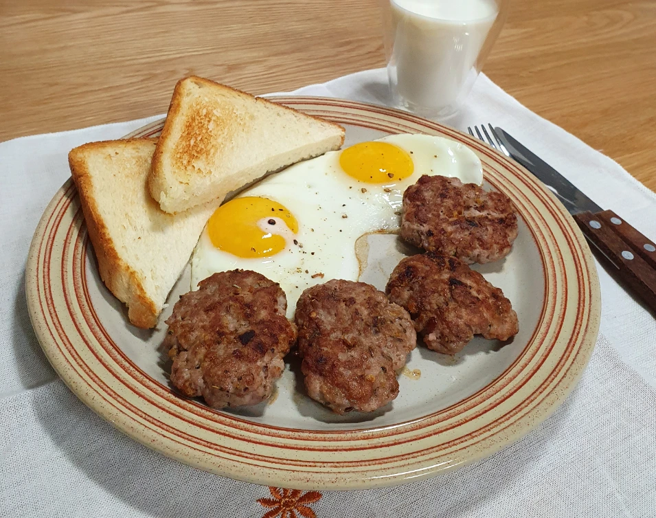 토스트와 달걀 프라이를 곁들인 브랙퍼스트 미트볼