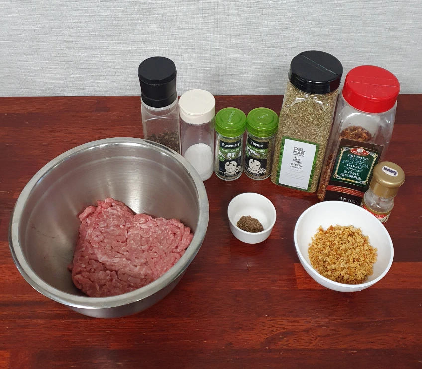 고기와 각종 허브, 소금 외에 달걀이나 빵가루 같은 것을 섞지 않았기 때문에 질감이 치밀하고 고기 맛이 강하게 난다. 오레가노, 로즈메리, 캐러웨이 씨앗 등 다양한 허브가 들어가 그 향을 즐길 수 있다. 집에 있던 말린 귤껍질(중국요리에 사용되는 진피)을 넣었더니 상큼한 향 때문에 먹는 즐거움이 배가 되었다.