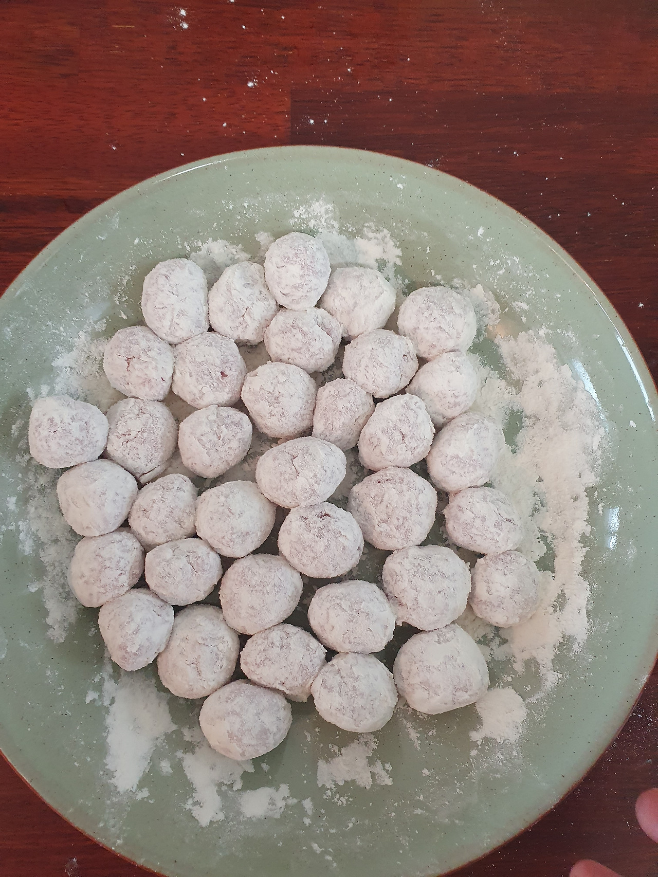 1. 반죽을 새알심보다 조금 작은 크기로 빚는다.