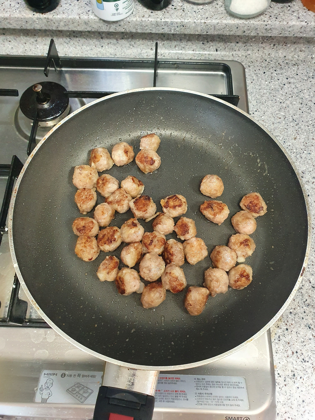 3. 기름을 넉넉히 두른 팬에 고기공을 노릇하게 익힌다.