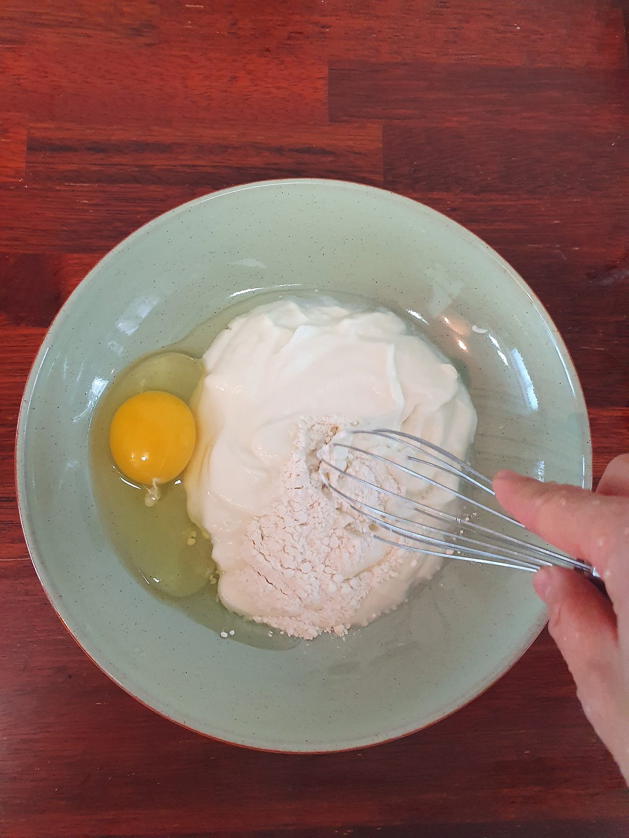 4. 깊은 그릇에 플레인 요거트와 달걀을 잘 섞는다.