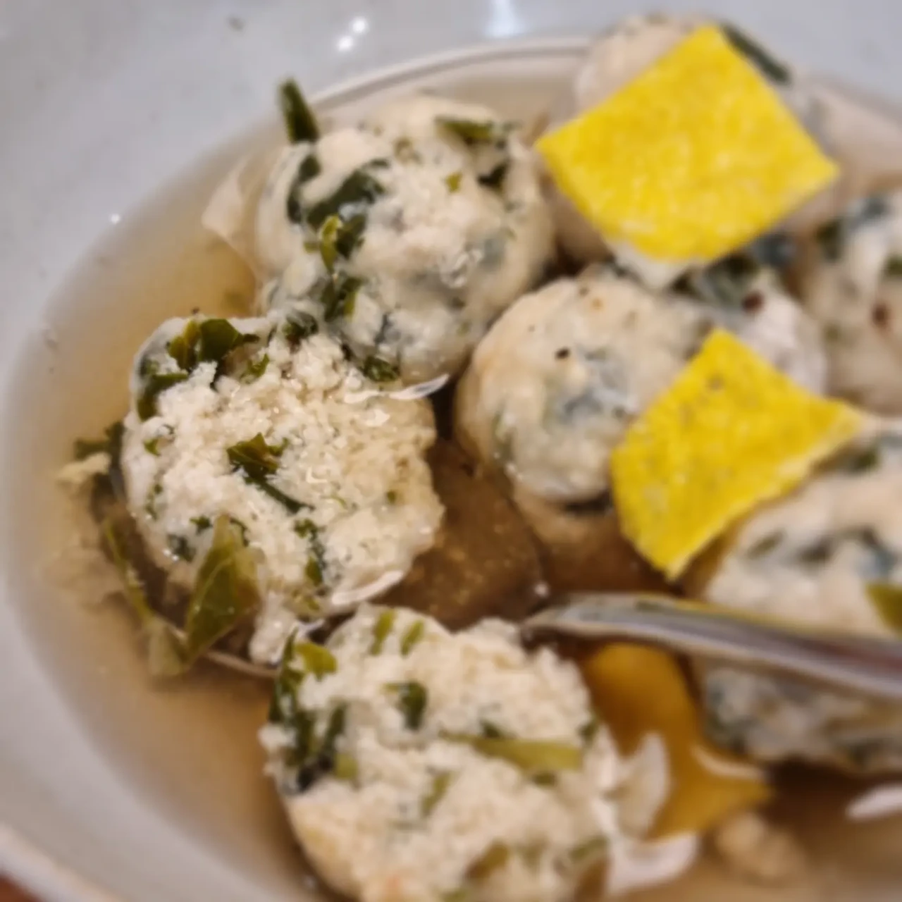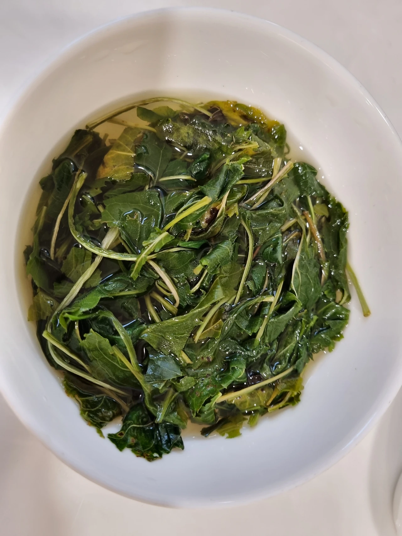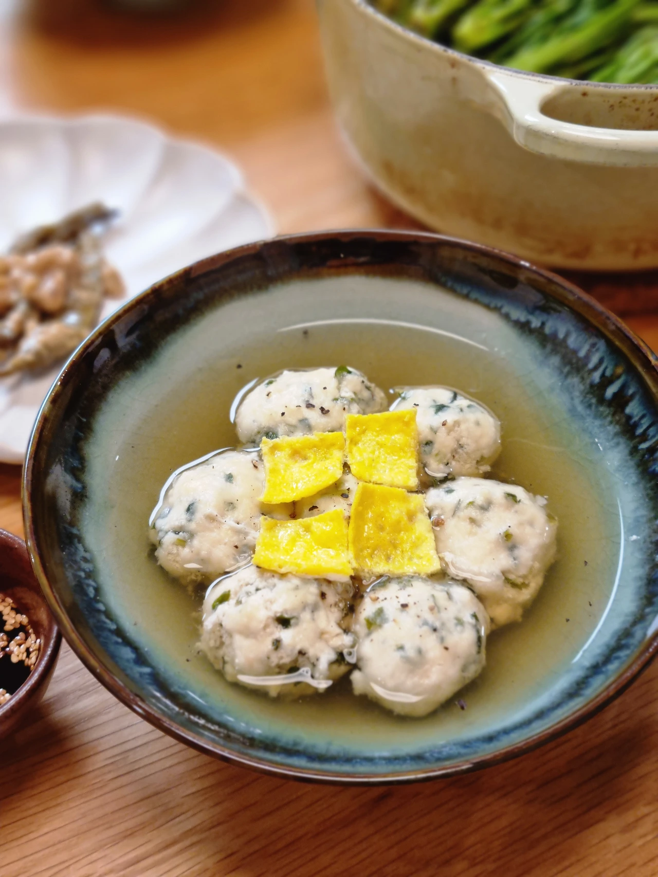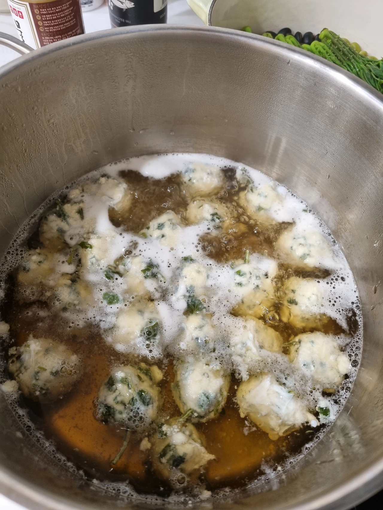 무한한 가능성 가운데 취사선택을 돕는 것은, 부엌에 쟁여놓은 그 날의 재료이다. 마침 오래전에 사둔 건취나물이 있어 저녁 메뉴 선정이 수월해졌다. 사찰요리 수업에서 배운 것을 응용해서 다진 취나물을 섞은 두부 경단을 빚기 시작했다. 건취나물은 뜨거운 물에 불려두고, 참치액과 간장, 다시마와 대파로 맑은 국물을 냈다. 불린 취나물을 잘게 다진 후 으깬 두부에 섞으며, 혹여나 부서질까 하는 걱정이 들어 달걀과 찹쌀가루를 더했다. 취나물이 섞어 대리석 같이 멋진 무늬가 생긴 두부 경단은 육수에 넣고 깨질세라 아주 약한 불에서 익힌다. 이대로도 좋지만, 장식용 지단을 올리면 금상첨화다.