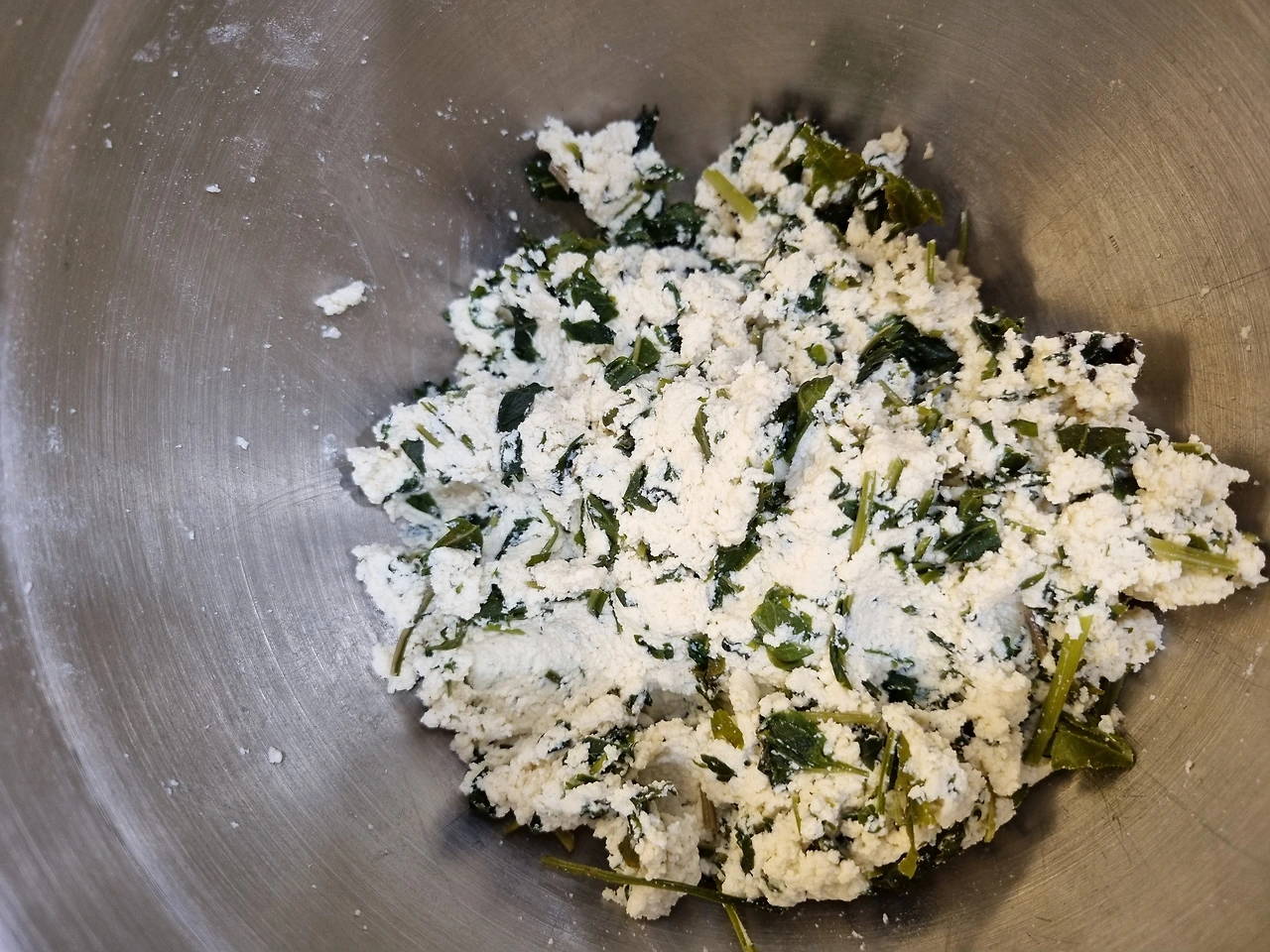 면보 속에서 부드럽게 으깨어지고 물기가 쏙 빠진 두부는 이전과 전혀 다른 재료로 변신한다. 손에 넣고 부드럽게 쥐면 동글동글 뭉칠 수 있는 것이 마치 찰흙 같기도 하고, 손가락으로 문지르면 포슬포슬 부서지며 알갱이지는 그 뽀얀 모양새는 이탈리아의 리코타 치즈를 닮아있기도 하다.