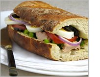 참치와 토마토, 올리브, 청피망, 삶은 계란 등을 올려 올리브 오일 드레싱을 듬뿍 뿌려 먹는 프로방스식 샌드위치