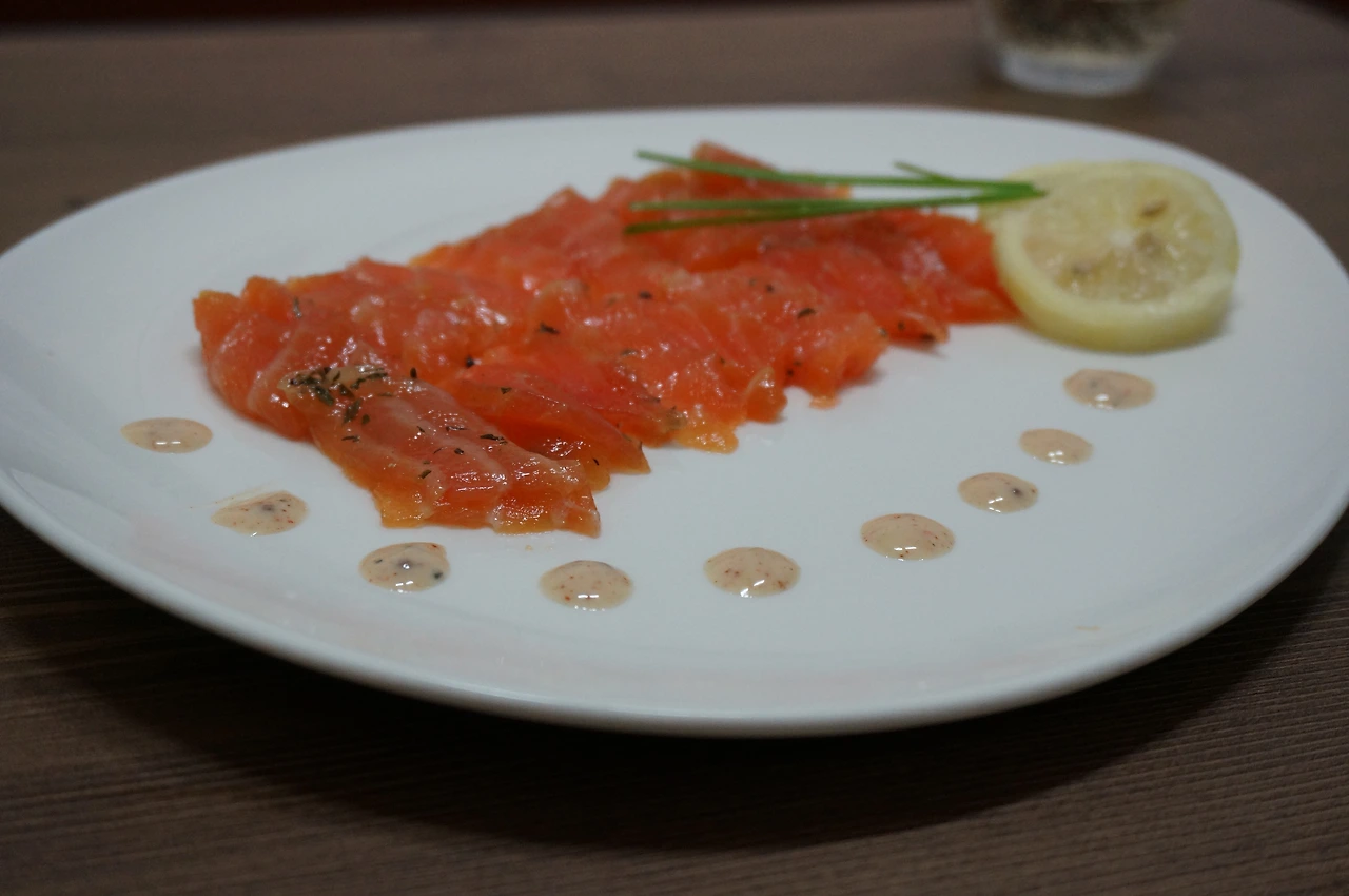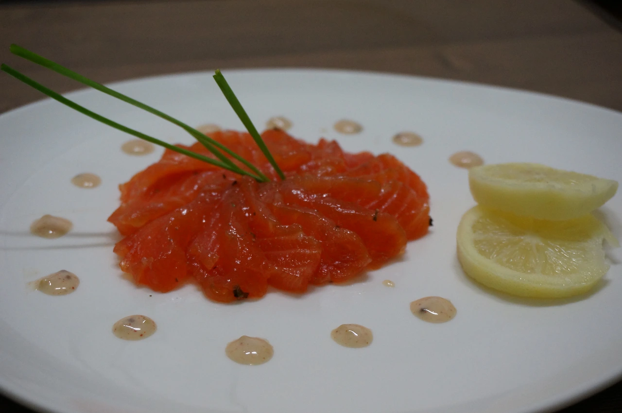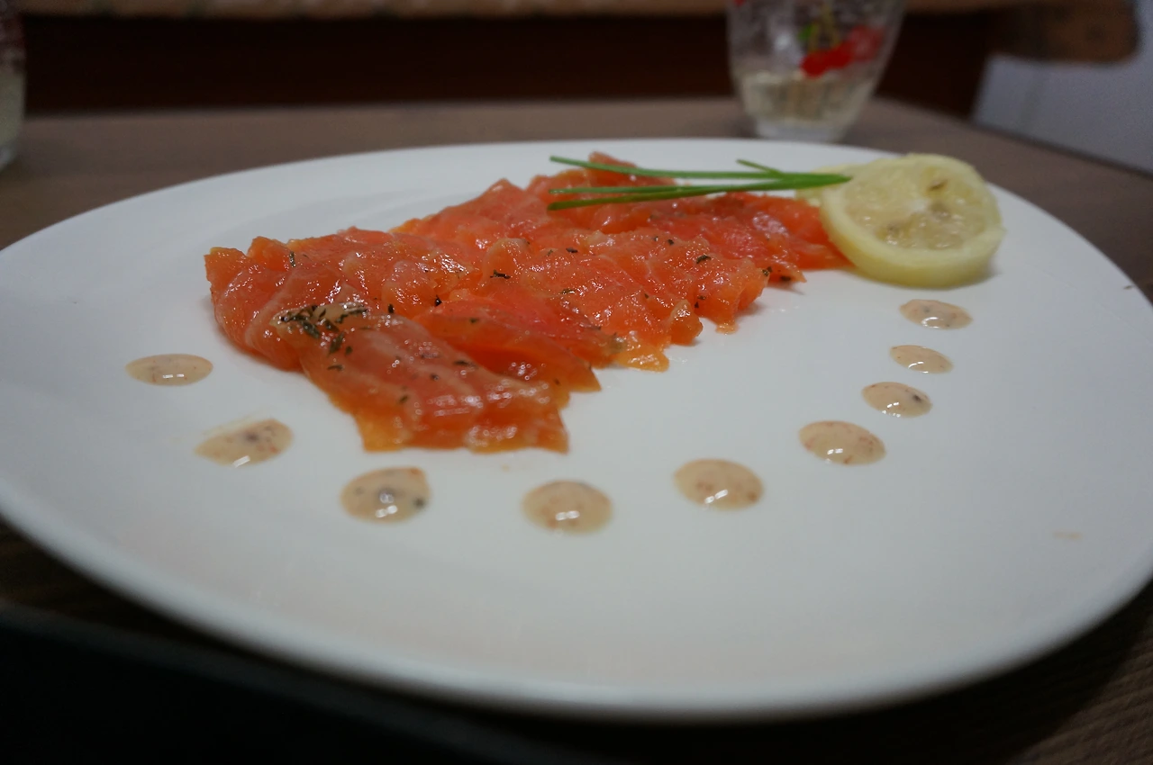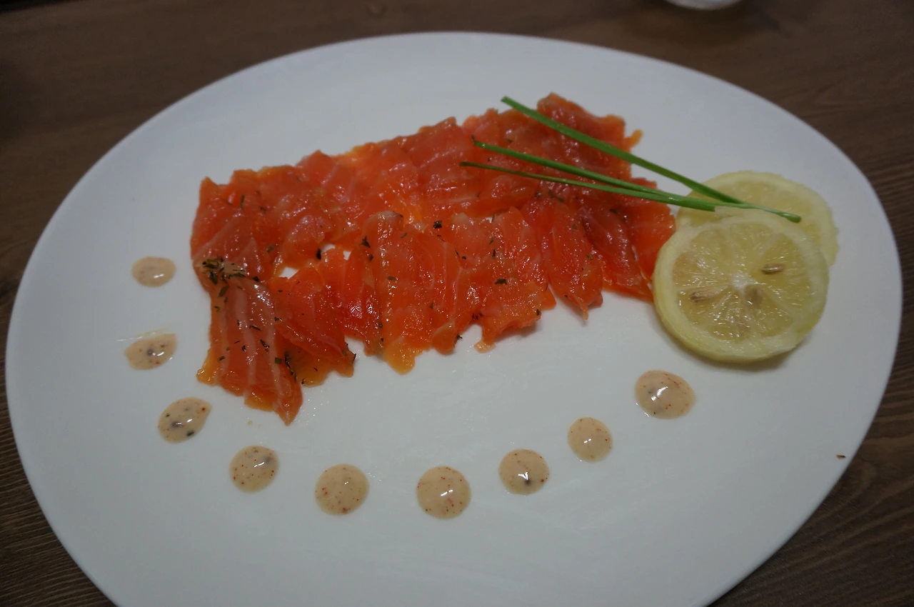 염장이라고는 하지만 스페인의 모하마(참치를 하몽 방식과 유사하게 엄장)처럼 소금을 들이부은 듯 짠 것은 아니고, 소금과 설탕과 술 등에 연어를 살짝 절여 수분기를 빼 내고 저장성을 높인 것이다.