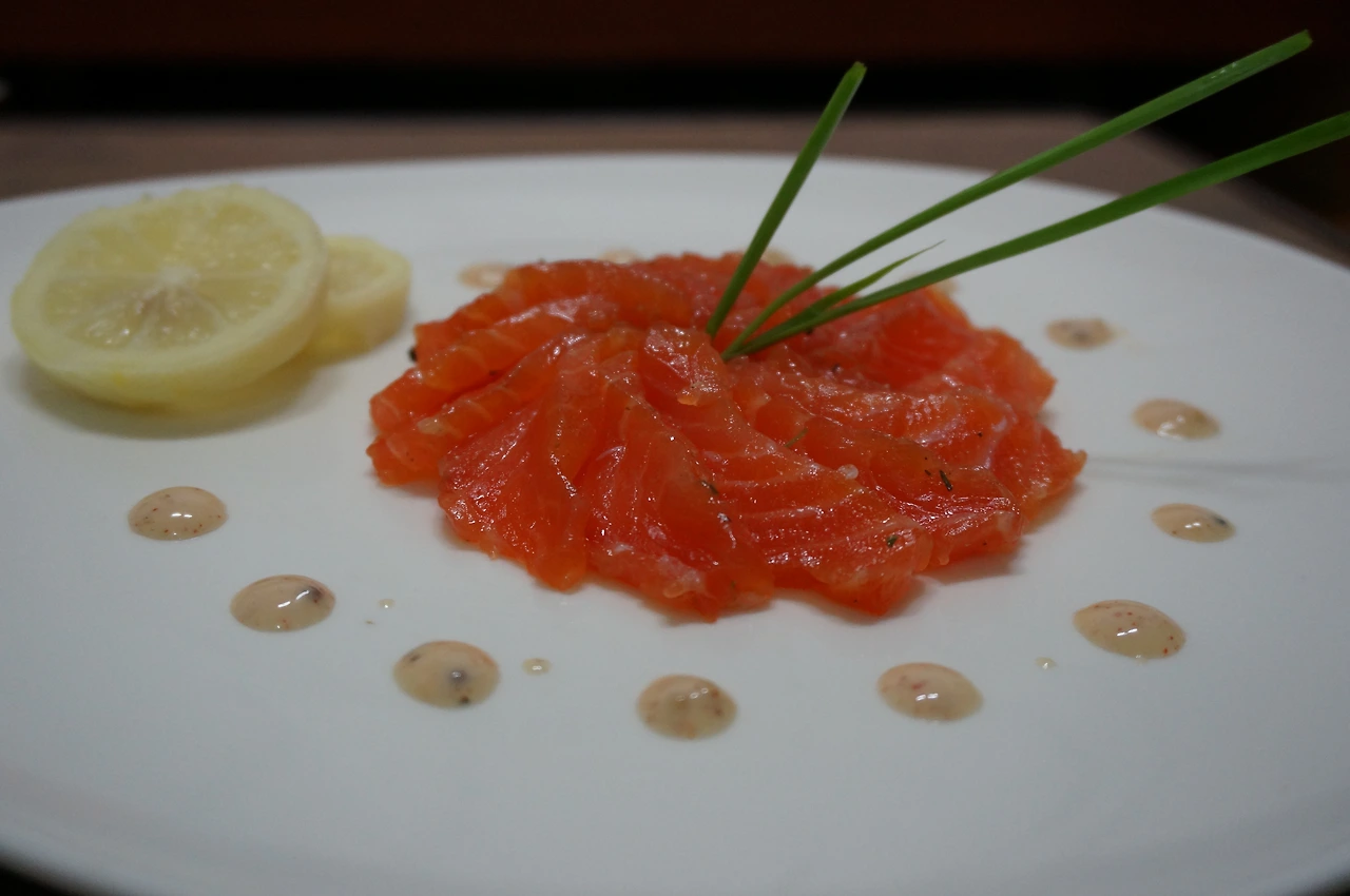 마치 탱글탱글한 젤리를 먹는 듯한 식감이다. 소금과 설탕의 작용으로 불필요한 수분은 빠지고 그 맛의 결정체만 남은 느낌이다. 한 조각을 입에 물면 레몬과 허브의 향, 그리고 농도 짙은 연어의 향이 터져나와 입안을 채운다. 여지껏 전혀 경험하지 못했던 황홀한 맛이다.