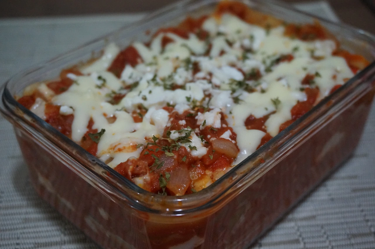 5. 준비한 라자냐를 익힌다. 면을 미리 삶아두었다면 맨 위에 올린 치즈가 녹을 정도만 익혀주면 된다. 전자레인지에서 2분 정도면 충분하다.