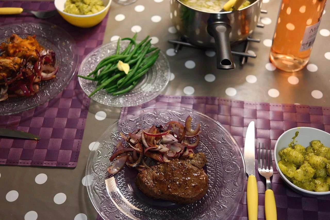 나름 제이미 올리브의 유튜브 동영상 등을 보고 스테이크 굽기 스킬을 몇 번이고 연습한 만큼 스테이크 굽기에 자신이 있었는데, 첫날은 부엌의 불 세기에 익숙하지 않아 너무 익혀버렸다. 나는 미디움레어를 좋아하는데 아차차하는 사이에 웰던까지 가 버린 것이다. 그래도 요리까지 하느라 배가 너무 고파 맛있게 먹었다.