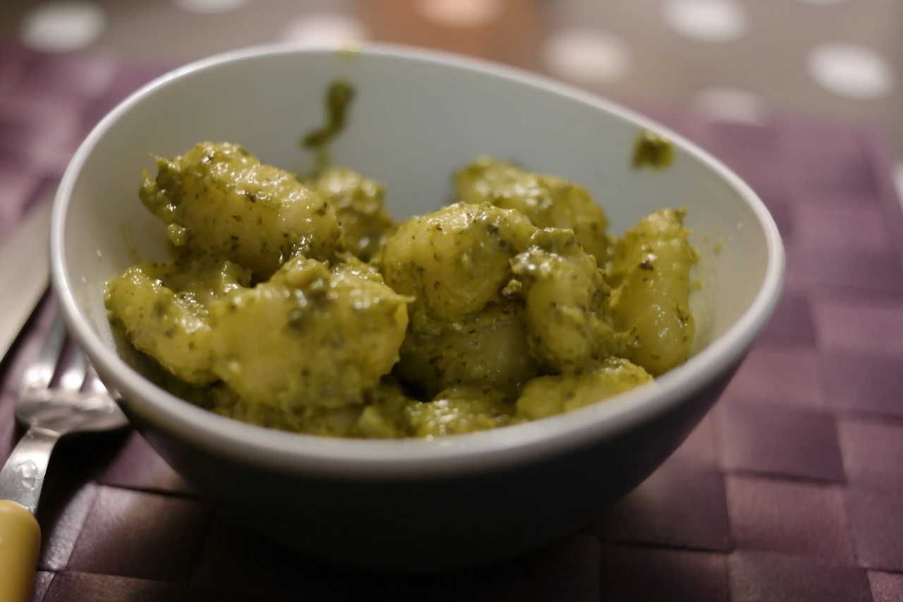 2. 뇨끼를 건져내어 아직 뜨거울 때 바질페스토를 넣어 섞는다.
