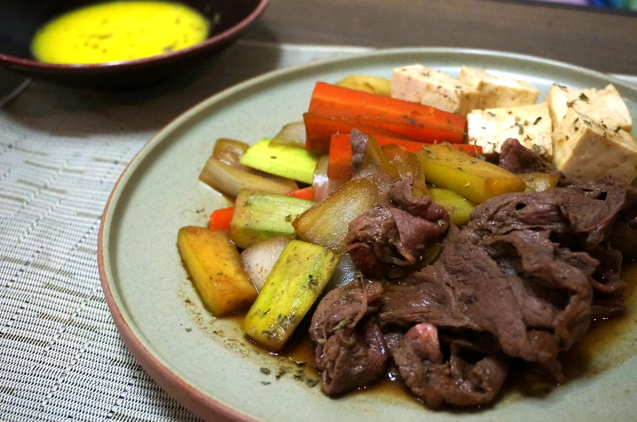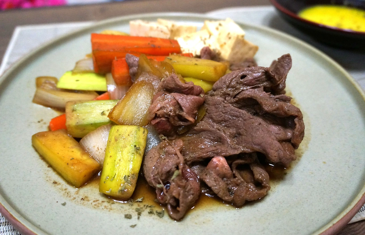 간장이 들어간 대부분의 일본 요리가 그러하듯이 짭잘하고 달큰하니 입맛에 꼭 맞는다. 고기는 부드럽고 채소도 잘 익었고 전체적으로 잘 어우러진다. 간장맛이 잘 밴 두부도 별미이다.