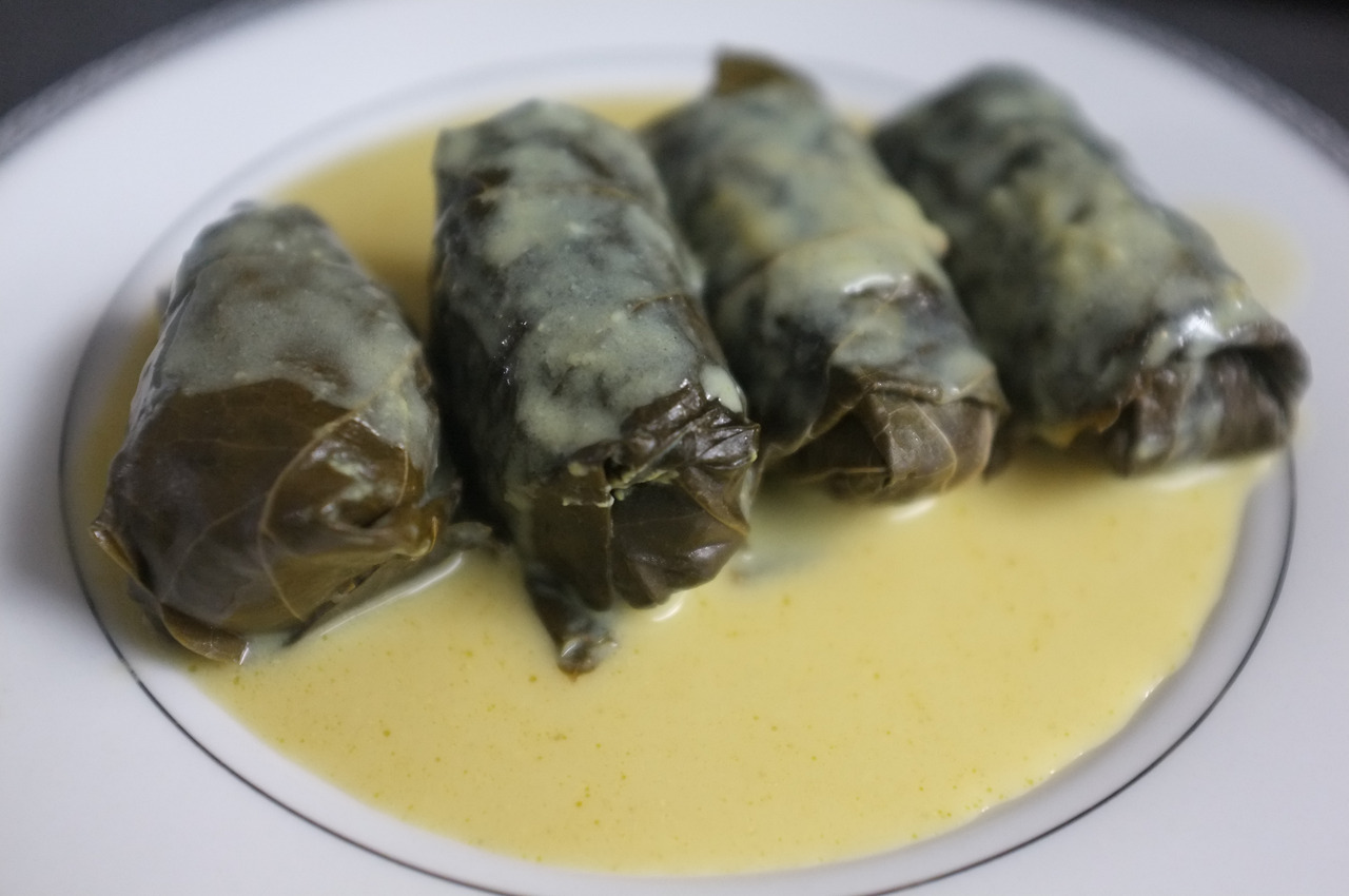 9. 냄비의 불을 끄고 잠시 기다렸다가 (8)에서 국물과 섞어서 충분히 풀어준 Avgolemono소스를 넣고 잘 풀어준다.