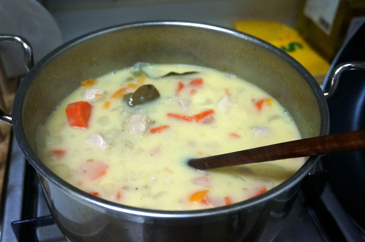 원래는 닭 한 마리를 다 써서 뼈와 살을 발라낸 후, 닭뼈와 통후추, 월계수 잎 등을 넣고 닭육수를 먼저 끓이는 것이 기본인 레시피이다. 그러나 자취생이 국 하나 끓여먹겠다고 닭 한 마리를 사는 것은 있을 수 없는 일. 냉동실에 있는 닭가슴살 3 덩이를 쓰고, 닭육수 맛은 어떻게는 그 안에서 해결해보기로 한다.