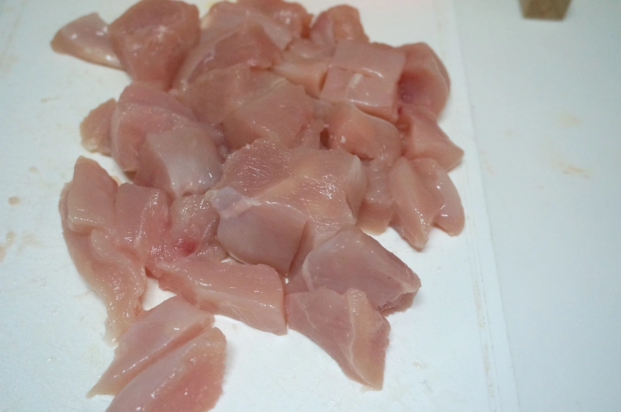 1. 닭은 해동시킨 뒤 깍둑썰기하여 준비한다.