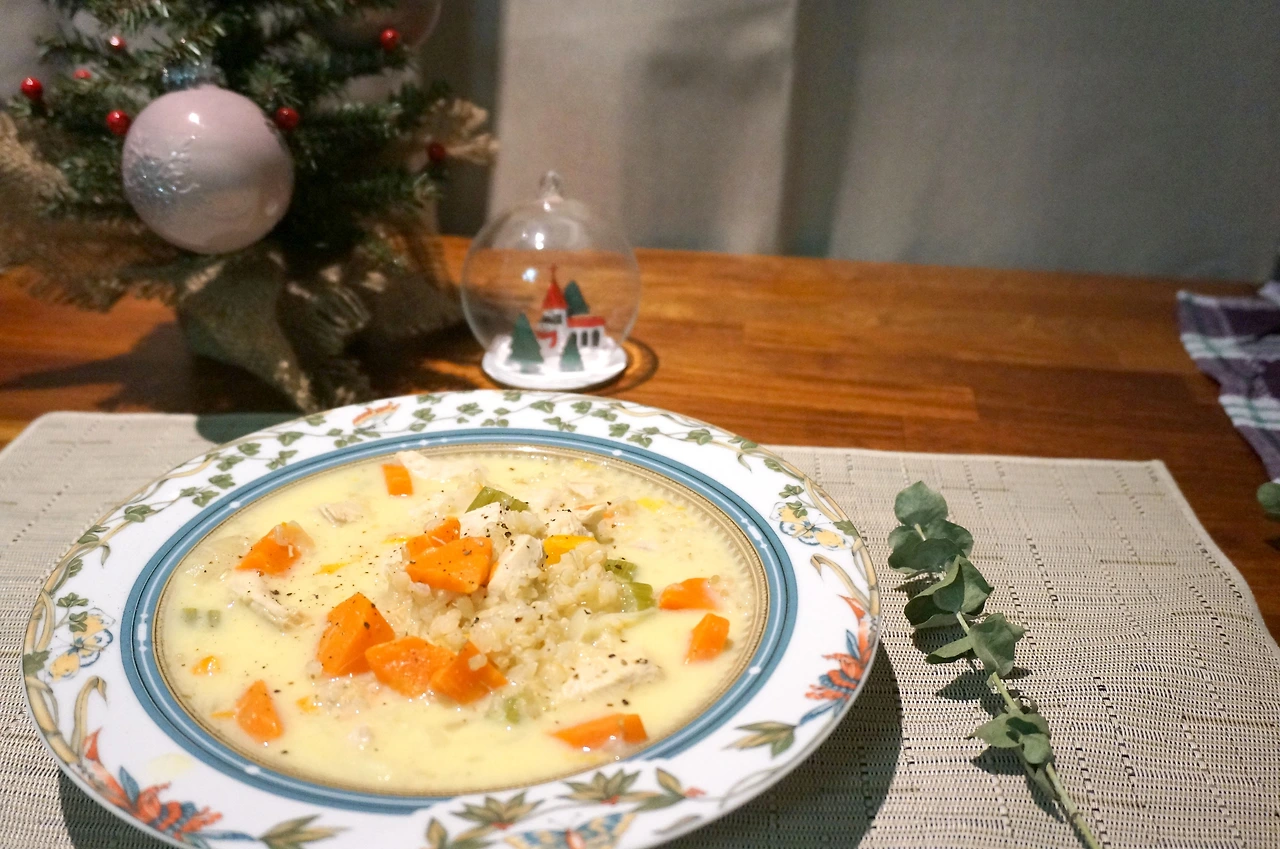 밥을 넣어도 되긴 하지만 생쌀을 넣고 끓이는 것을 추천한다. 30분 정도 끓이면 쌀이 어느 정도 익는데, 잘 익은 밥과는 다른 약간 꼬들한 그 식감이 수프에 잘 어울리기 때문. 정 생쌀을 넣기 싫다면 밥은 수프를 거의 완성한 시점에서 더하는 것이 좋을 것 같다. 그렇지 않으면 수프가 아니라 죽을 만들게 될 것이다.
