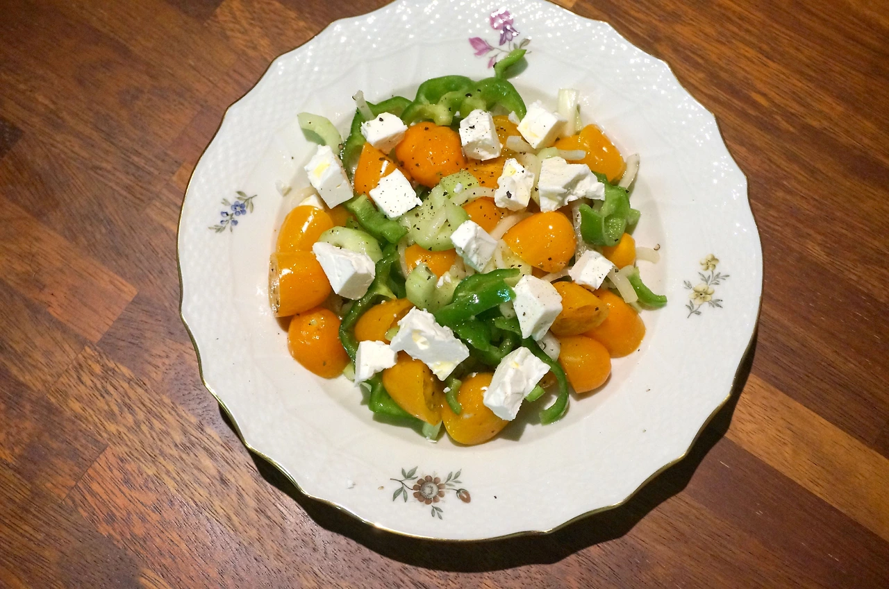 언젠가는 푸른 그리스 바다를 바라보며 그릭 샐러드를 먹어보아야지. 자취방으로 생기 넘치는 그릭 샐러드를 불러와 보자.