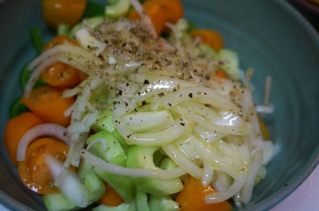 -청피망 하나(청피망의 시원하고 살짝 매콤한 향이 샐러드에 생기를 준다)
