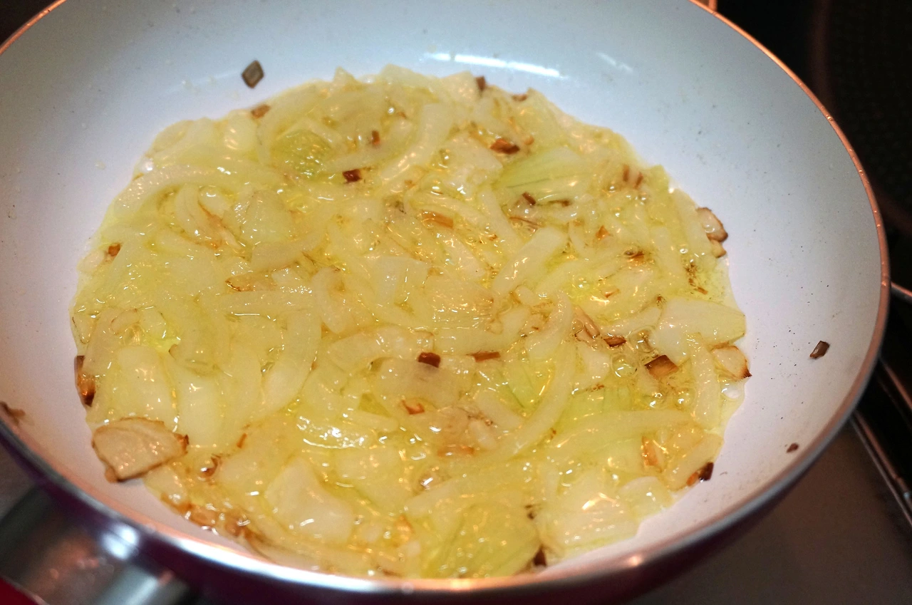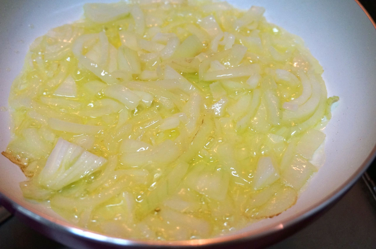 감자가 아닌 양파를 먼저 넣고 익히는 것은, 감자를 먼저 익힐 경우 양파를 카라멜라이즈(맛있는 갈색이 돌게 하는 것)시키기 어렵기 때문이다.