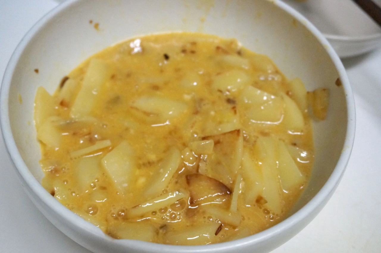 4) 감자가 익기 전에 미리 풀어서 준비한다. 소금 후추 간은 아직이다.