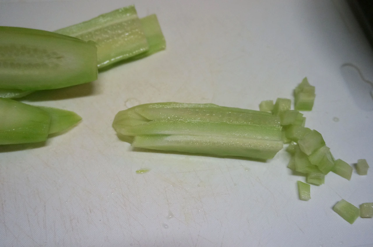 -홍고추 하나: 나는 생략했다. 만약 홍고추를 넣고 싶다면 잘게 다져서 넣는다.