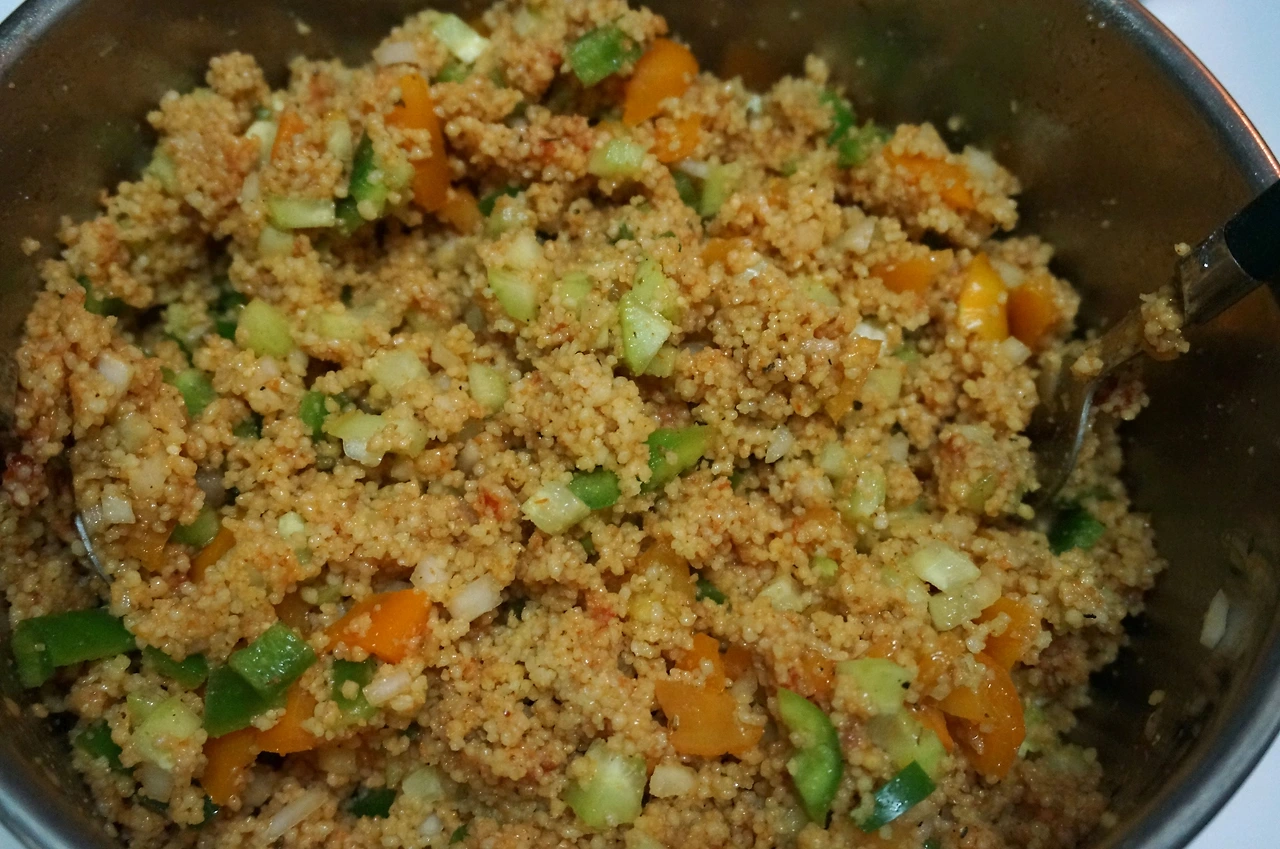 6) (5)의 쿠스쿠스에 준비한 채소와 각종 허브를 다해 잘 섞는다.