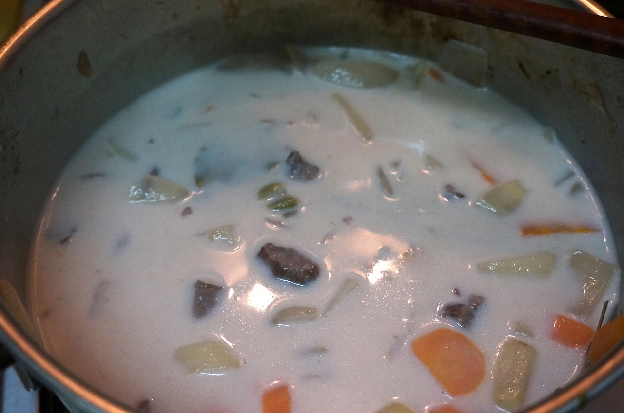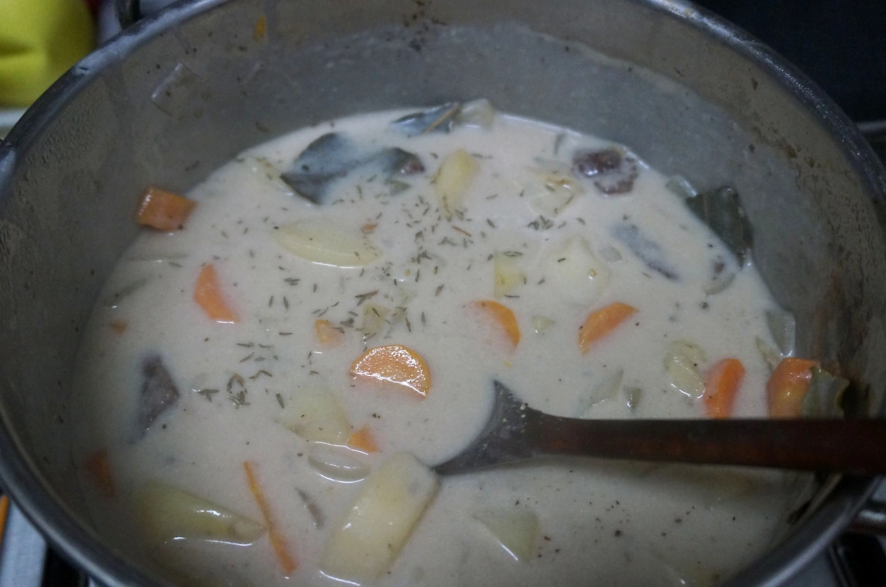 만약 고형 스튜가 없다면 버터와 동량의 밀가루, 우유로 루를 만들어서 더하면 된다.
