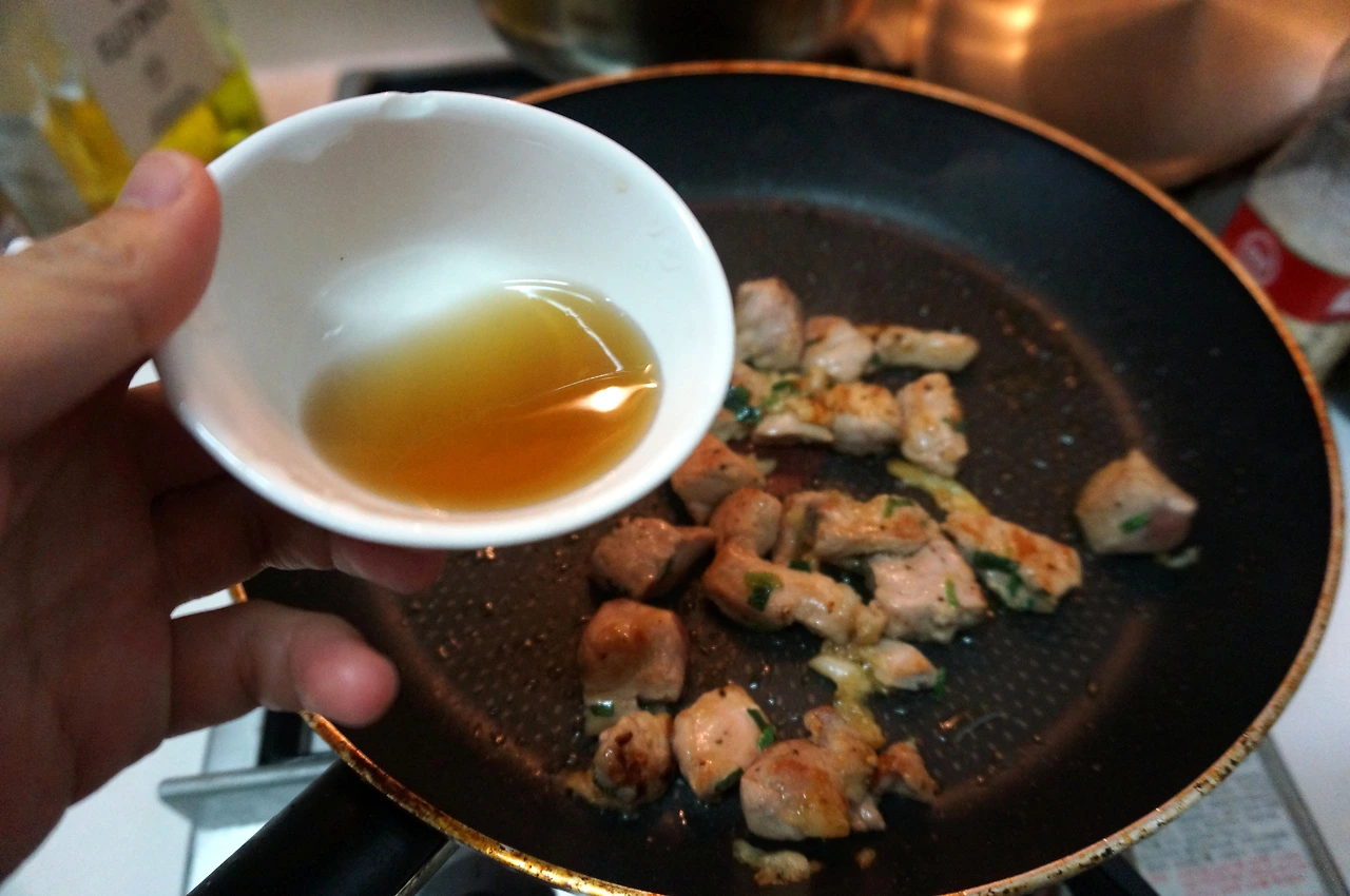 여기서 돼지 고기양과 추가할 부추의 양을 생각해 간을 살짝 조절한다. 다만 피시소스가 매우 짜기 때문에 피시소스를 추가하고자 할 때에는 이를 감안해 아주 조금씩 더해야 한다.