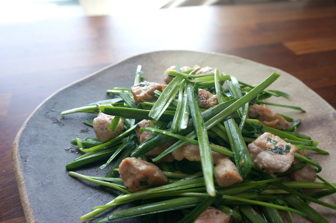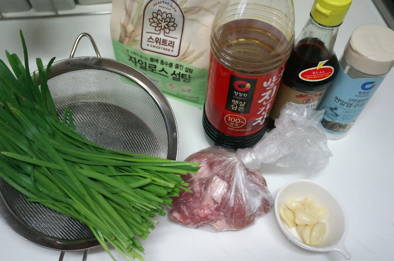 오늘 만들 요리는 태국식 돼지고기 부추 볶음이다. 고기보다는 부추의 양이 더 많고 맛의 중추가 되며, 피시소스와 설탕이 들어가 단순 평범한 조리법이지만 태국요리의 느낌이 물씬 풍기는 요리이다.