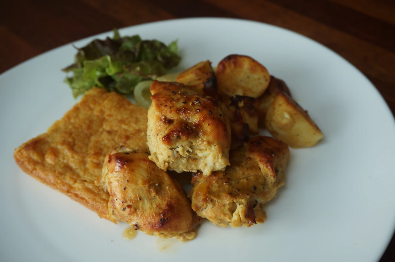이 콘 푸딩은 주로 사이드 디쉬로 먹는다는데, 그렇다면 요 고소한 녀석에게 어울리는 짝꿍을 만들어 주어야 할 것이 아닌가? 검색해 보니 닭고기 구이이 콘 푸딩과 잘 어울린다고 한다. 그래서 콘 푸딩을 만든 바로 다음날 아침으로 바로 머스터드 치킨 구이를 만들어 먹었다.