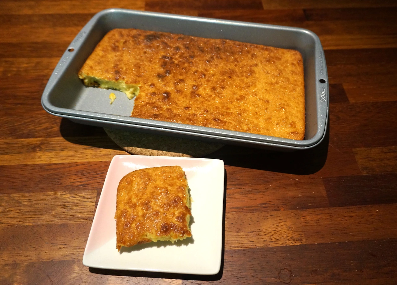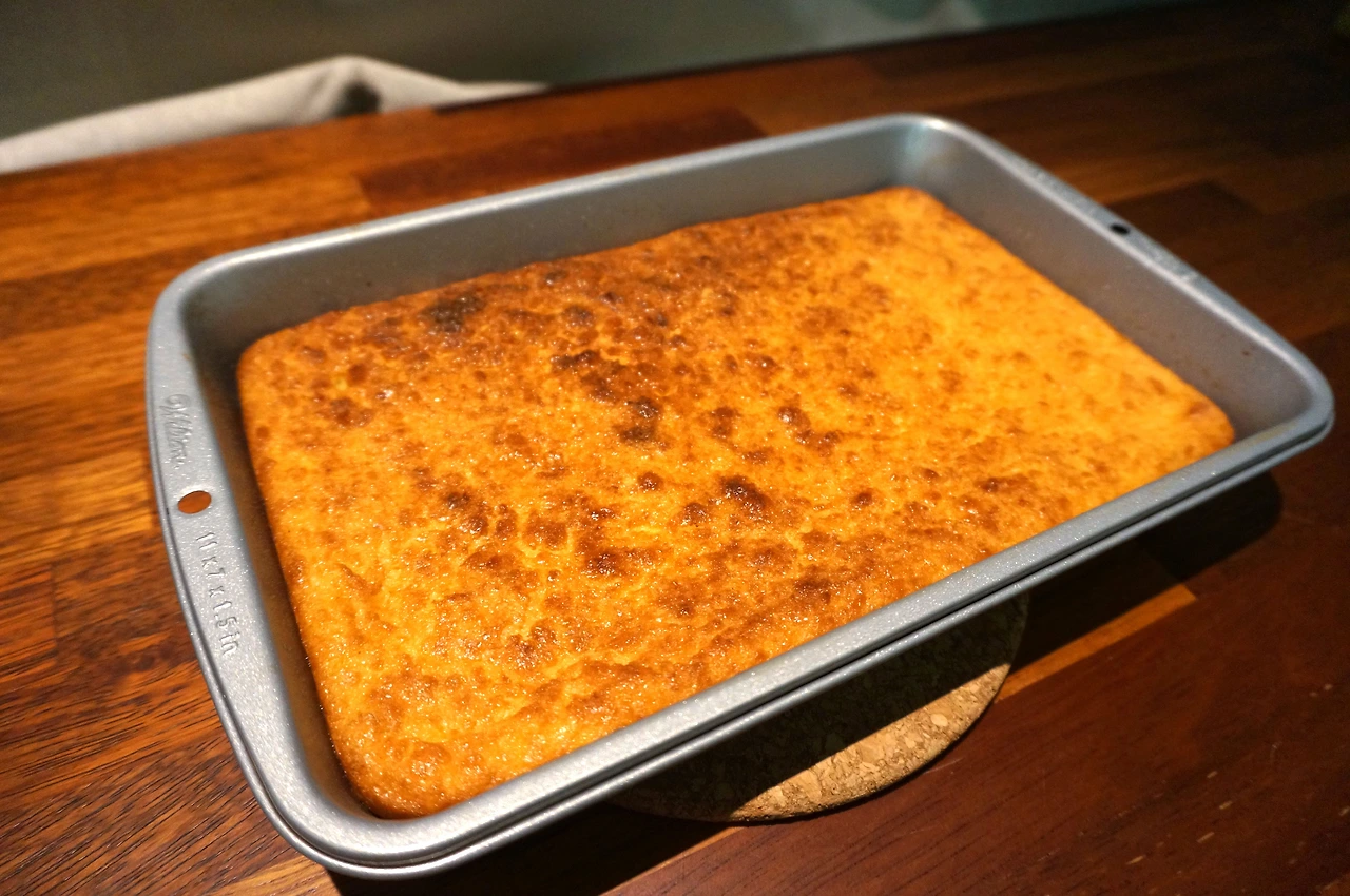 어이없게도 단 두 단계만에 그럴듯해 보이는 콘 푸딩이 완성되었다.
