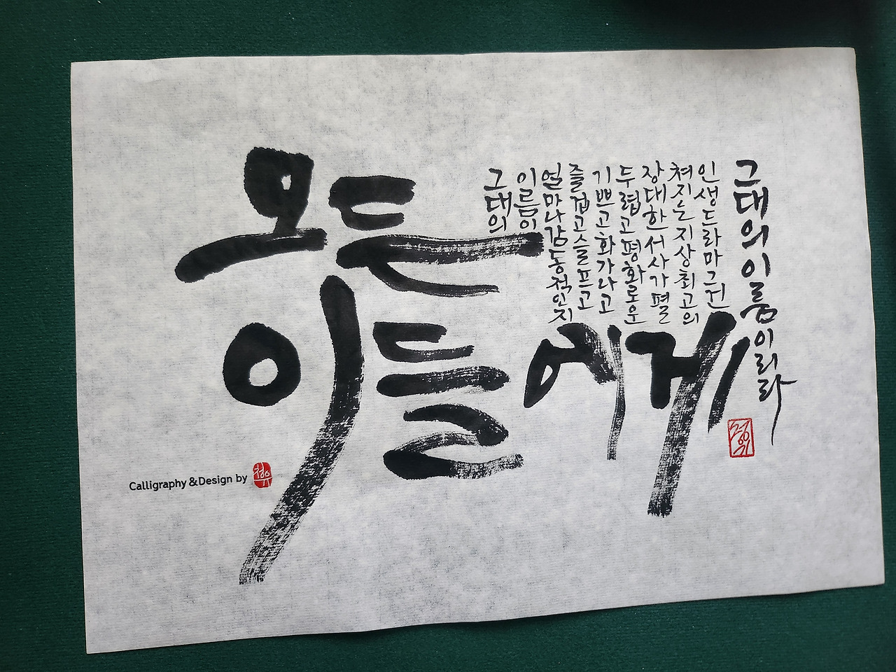 늘 이래왔던 것 같긴 하다. 기념일을 앞둔 걱정은 누구로부터 언제 어디서 어떻게 왜 기인한건지, 가정의 달로 향하던 불만의 화살은 부메랑처럼 나에게 돌아왔다. 여적지 예민하게 사니, 혹은 무던한 사람이 무언가로 인해 까다롭게 구는 사람이 되었니. 원래부터 그랬던건지 혹은 그런 사람이 되어버린건지 모르겠으나, 그래봐야 시작과 끝이 있는 한동안의 세월이라 여겨본다. 캘리그라퍼로서, 그 많은 삶의 영감과 아름다운 문장을 끼고 살아감에 깊이 안도해 보기도 한다. 보여주고 싶은 문장들은 곧 내가 듣고 싶은 위로였으므로, 역시 내게도 동아줄 같았기 때문이다.