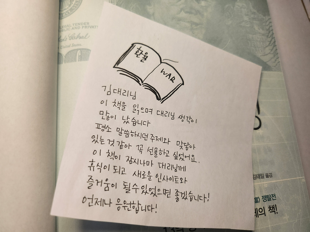 선물 받은 책을 읽으며 중간중간 쪽지의 내용을 떠올린다면 그 책은 단순한 책을 너머 마음이 연결되는 다리가 될 거예요.