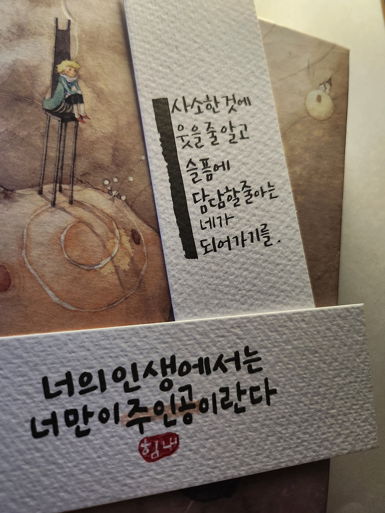 이런 따뜻한 응원의 문구를 손글씨로 적어 선물하면 자녀에게 큰 위로와 용기를 줄 수 있습니다. 책을 읽으며 그 책갈피를 볼 때마다 부모님의 사랑도 느낄 수 있을 거예요.
