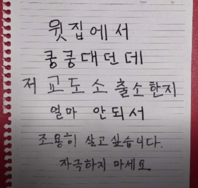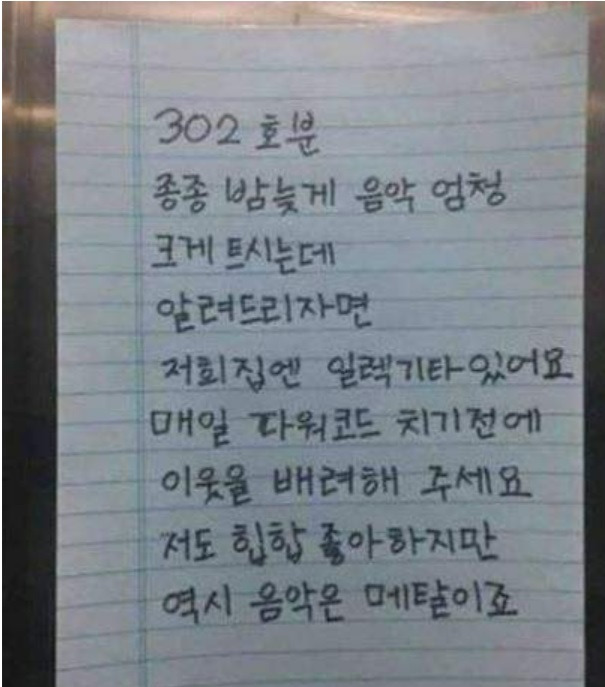 항간에 떠돌아다니는 층간소음 항의 쪽지 -협박편- 효과는 좋으나 관계가 틀어짐.