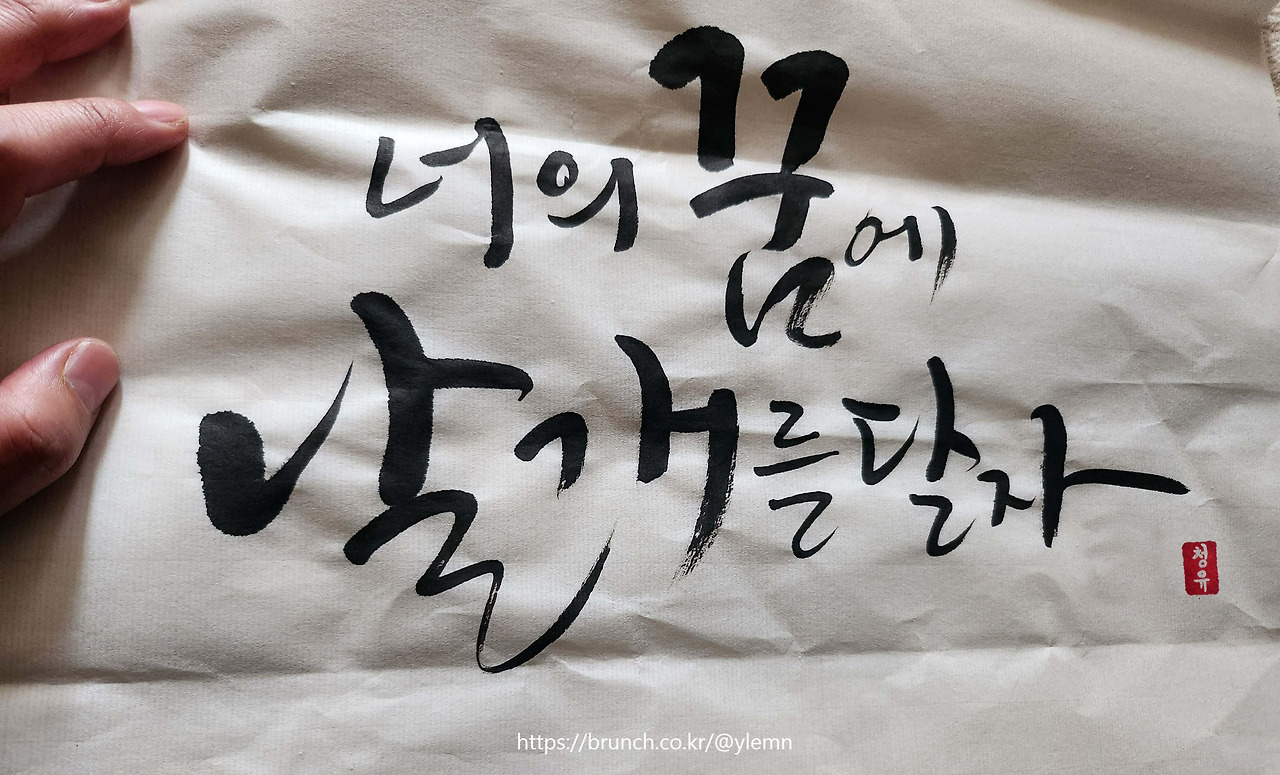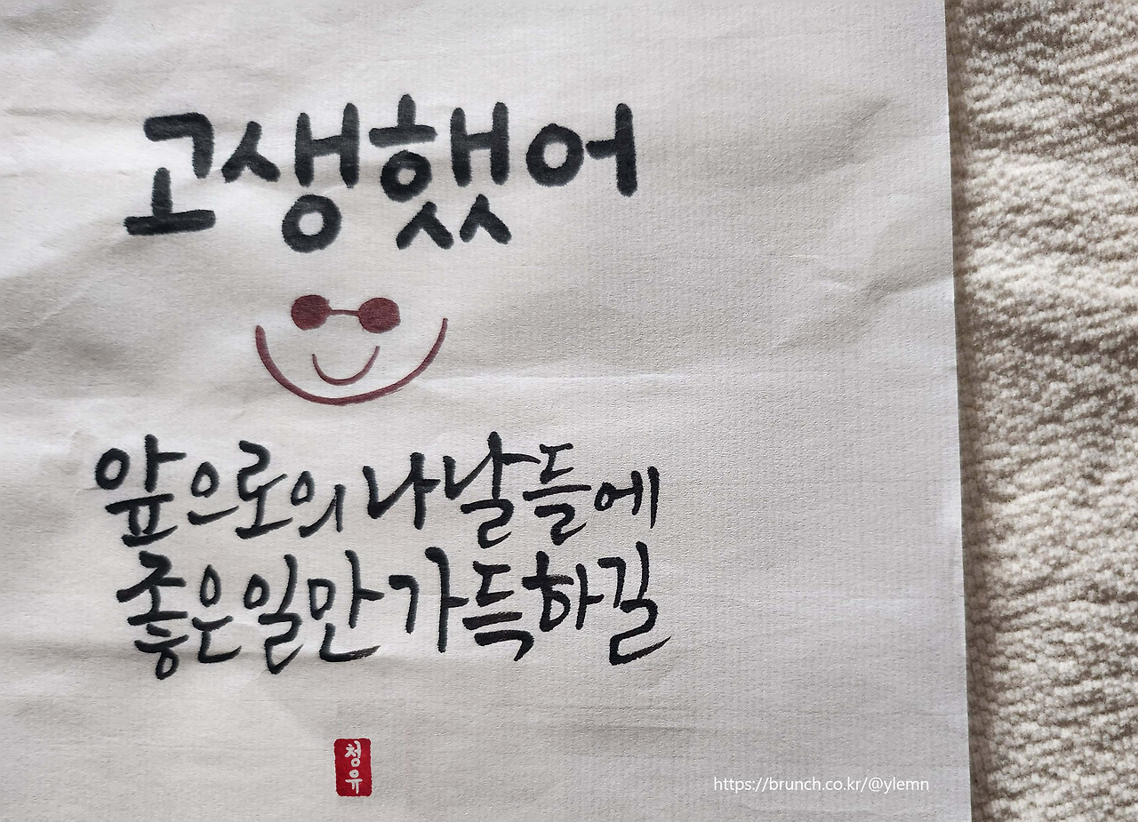 캘리그래피를 배우면 긴 편지 쓰기 귀찮을 때, 한 문장만 써도 성의없는거 티 안나서 좋아요.
