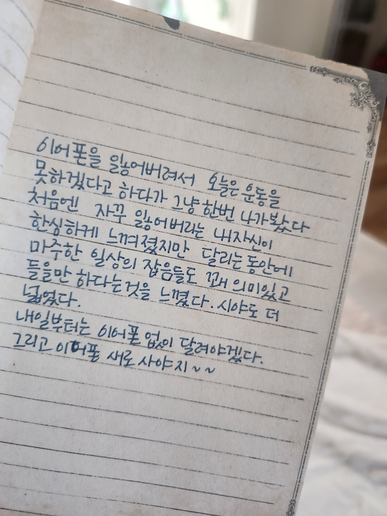 전에는 포스트잇에 써서.. 설거지할 때 고개 들면 보이는 곳에 붙였었는데 자꾸 떼져서.. 젖고.. 찢어지고.. 버려지고.. 나의 감사들이 흑.. 그래서 노트에 씁니다.ㅎ 메모지에 쓰실 분들은 스크랩 필수요..
