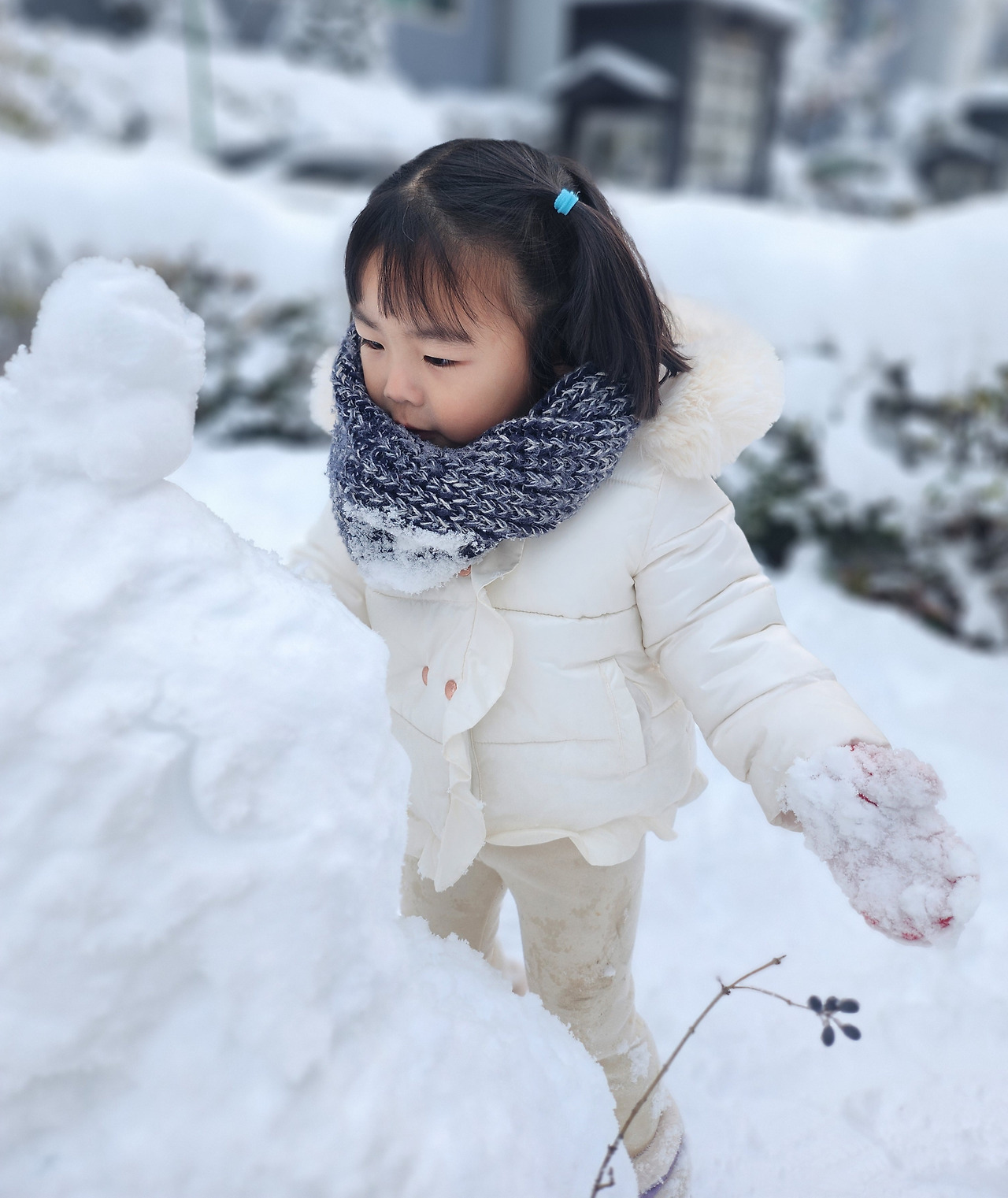 "와아~ 눈이 이렇게까지 펄펄 내려쒀어어~? 와아~ 너무 하얀데에~?"