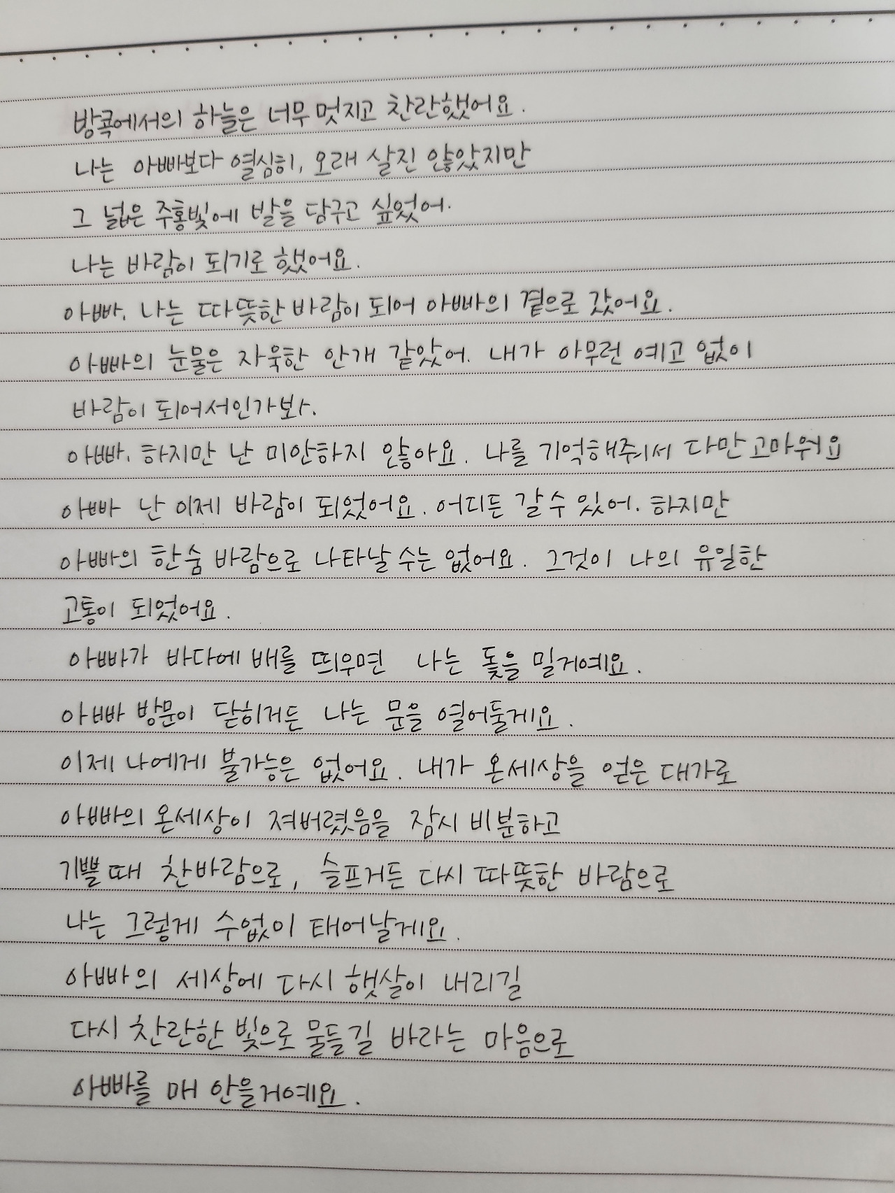 <애도문> 고통스럽지 않았길.
