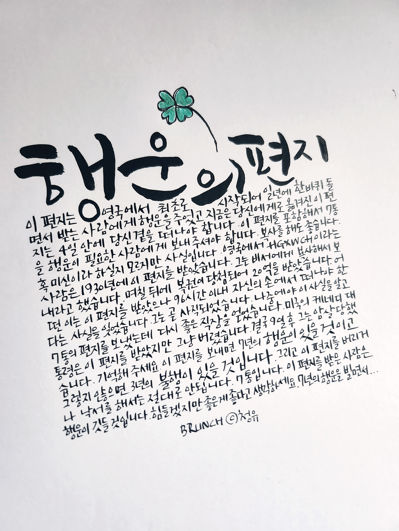 행운도 편지도 다 좋은 단어인데, 어쩌다 이렇게 됐을까요. 불운의 느낌이 드는 행운의 편지가 정말 행운으로 가득히 이어전해질 순 없을까.