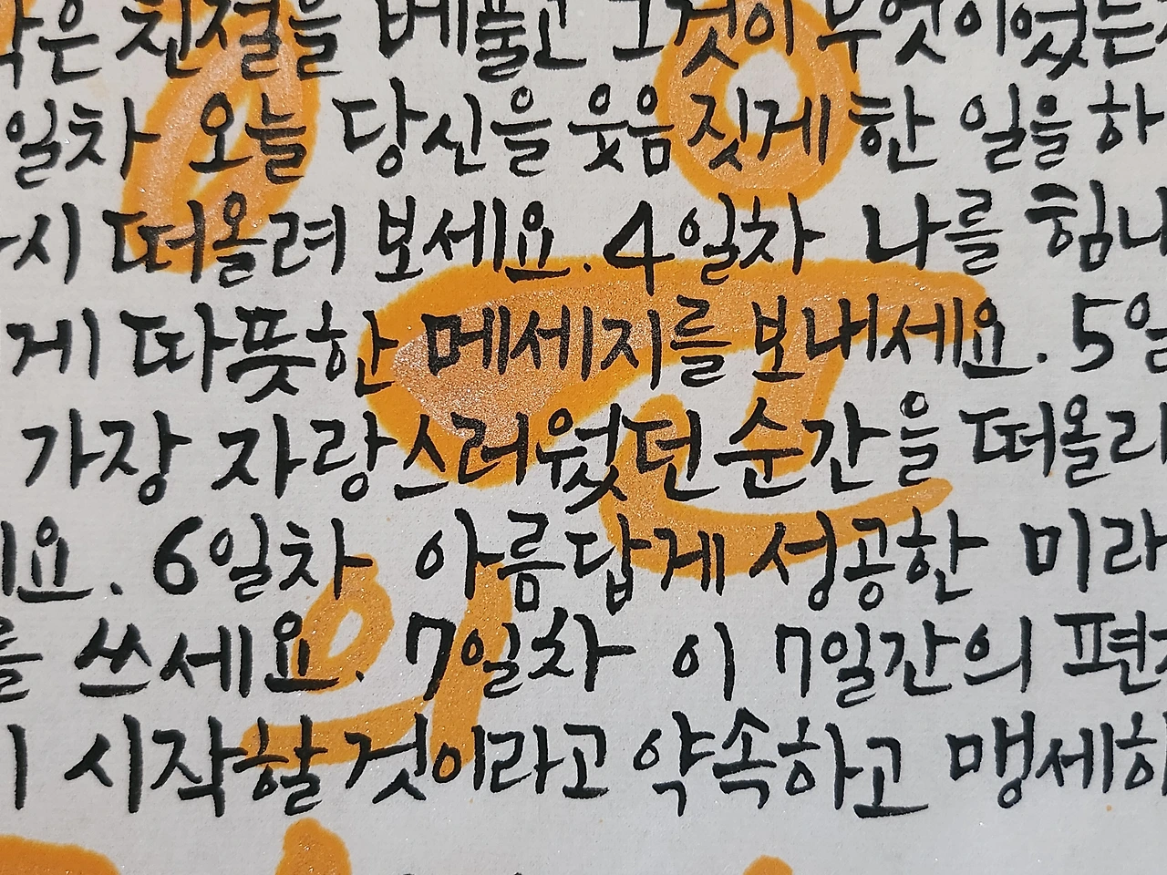 1일 차 : “나는 충분히 잘하고 있다.” 이 문장을 종이에 직접 써서 눈에 띄는 곳에 두세요.