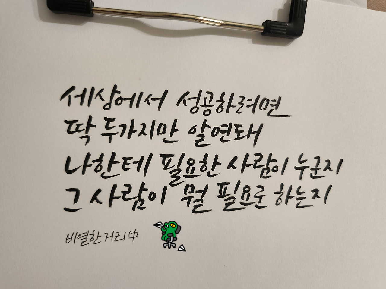 뜬금없는 고백이지만 나는 직업이 없다. 주부, 캘리그라퍼, 작가 등을 국어사전에 나오는 "직업"의 조건들로 대봤을 때 그 어느 것도 직업으로서 해당되지 않음을 방금 알았다. 그래도 브런치작가라는 타이틀에는 자부심을 느끼며 지내왔다. 어쩌면 진짜 작가가 될 수도 있지 않을까 하며 상상도 했다. 그런데 지금, 작은 생채기 하나에 작가 은퇴를 운운하고 있는 걸 보니, 그마저도 불안한 정체성을 감추려던 그럴듯한 명칭이었을 뿐인가 싶다. 나는 과연 여기서 무엇을 원했는가. 일기쓰기? 글배우기? 출간하기? 홍보하기? 지원서엔 소재부자인척 한껏 꾸며 위장진입에 성공했지만, 뚜렷한 목표도 없이 난 지금도 휘둘리고 있다. 글에 대한 모든 것이 상향평준화된 이곳에 머물면 뭐라도 배우겠거니, 뭐라도 될 수 있겠거니 했다. 그러고 보니 "순수하게 글만 쓰고 싶어서 여기 왔다"는 흔한 말조차 한 적이 없다. 사실이 아니기 때문이다. 난 글을 잘 써서 책을 내고 싶었다. 브런치가 내 목적을 이뤄줄 것인지가 막연했지만, 일단은 배울 게 많겠지, 길이 좀 보이겠지, 했다. 무슨 장르가 자신있는지, 여기서 뭘 배우고 어떤걸 확인하고 싶은 건지는 내 속인데도 첩첩산중이다. '어차피 안 할 거니까 다 가르쳐주는' 베풂이 유튜브에 널리고 널렸는데도 여지껏 출간 프로세스 한 번 둘러보지 않았다.⑶ '어차피 안 할 것'을 너무 주제넘게 시작했을까. 아니면, 일개 비판에 쉽게 관두네 마네 할 만큼 이곳이 내게 가벼운 곳이었나. 그 너머에 있는 '어차피 안 할 그것'을 최종적으로 꼭 해보고 싶었고, 배움은 그저 밑밥이었음을 이제야 인정해본다. 안그래도 막연한데 비난이나 받는다는 건, 정말 나 틀려버린거 아니야?,라고, 희미한 본질이 더욱더 뿌얘졌다. 곡해 해석돼 던져진 한마디에 주저앉아, 스스로에게 가장 가혹한 비난을 퍼붓고 있지 않은가.