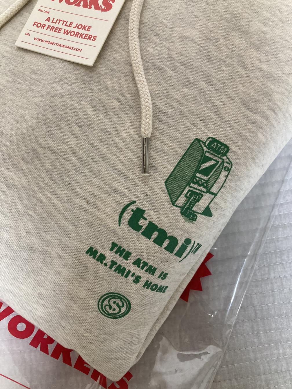 이 귀여운 후드티는 모베러웍스의 제품으로, 모베러웍스는 'a little joke for free workers'라는 미션 아래 일하는 사람을 위한 위트를 담은 제품을 만드는 브랜드다. ASAP과 같이 회사에서 최대한 빨리 작업해 달라는 독촉용으로 쓰이는 표현을 'As SLOW as possible'이라고 바꾼다던가, TMI (too much information) 대신 Mr. Too Much Income이라는 캐릭터로 바꾸어 회사원이라면 웃을 수밖에 없는 재미있는 콘셉트로 제품을 만든다. 더욱 특별한 점은 MoTV라는 유튜브 채널을 통해 이 브랜드의 탄생기, 제품 제작기 등 과정을 가감 없이 공개하고 또 어떤 메시지를 만들어나갈지도 팬들과 소통하면서 함께 만들어나간다는 점이다. 실제로 TMI라는 콘셉트도 유튜브 댓글에서 힌트를 얻어 탄생한 표현이다.